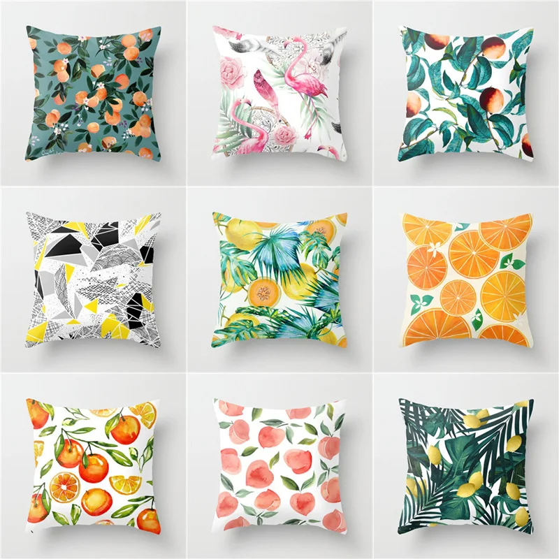 Наволочка с рисунком фламинго, полиэстер, хлопок, 45*45 см, наволочки для домашнего декора, красочные Наволочки с фруктами для дивана, автомобиля, наволочки