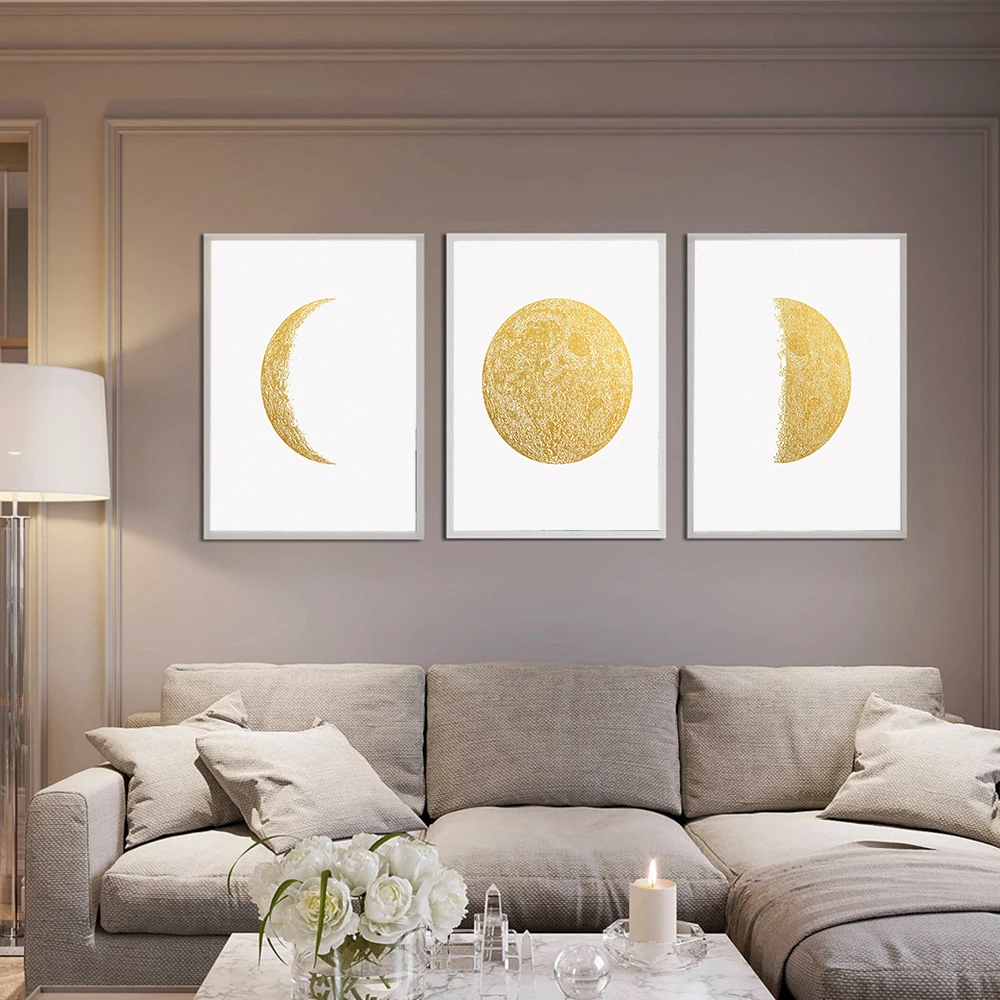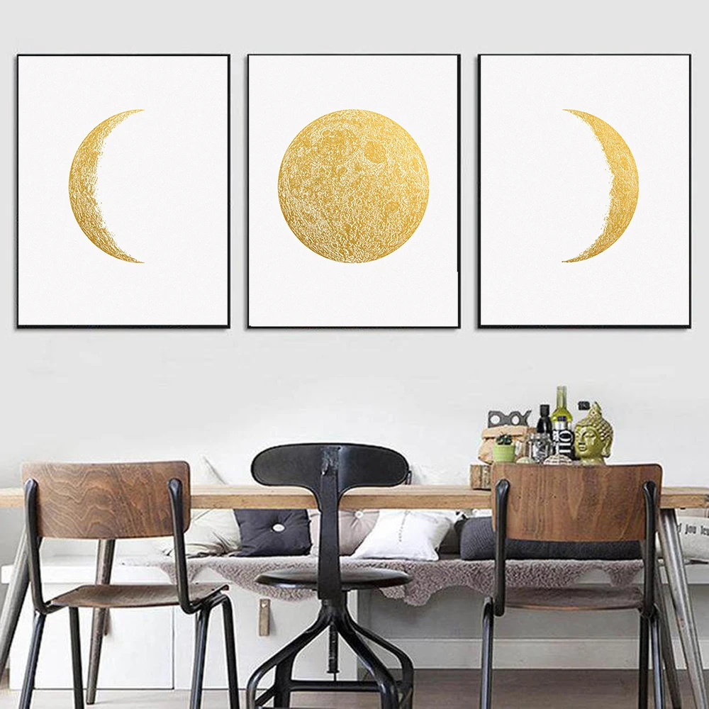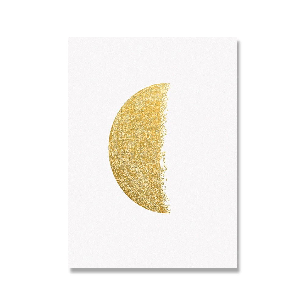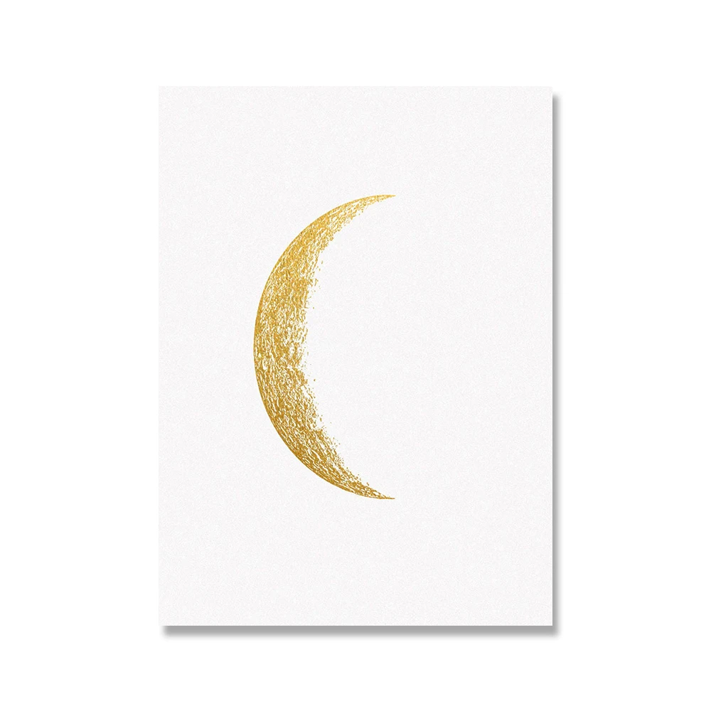 Абстрактная Лунная фаза, постер, Золотой полумесяц, полная луна, искусство, холст, живопись настенные картины для детской комнаты, гостиная, домашний декор