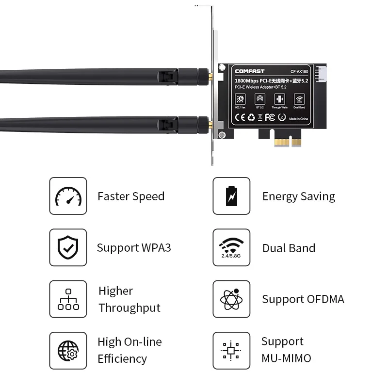 1800 Мбитс PCIe wi-fi 6 настольная wi-fi карта 11AX для Win 10 802.11acax Bluetooth 5,2 двухдиапазонный беспроводной адаптер Антенна wi-fi карта