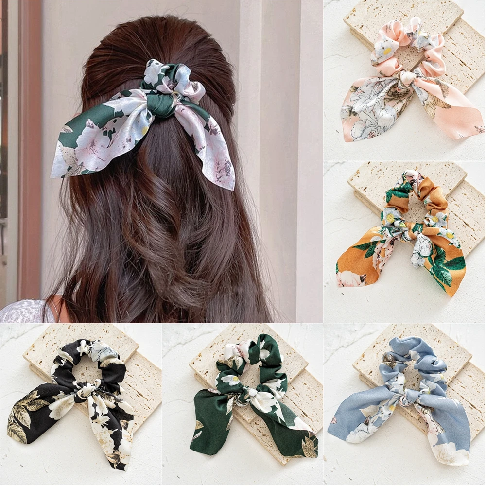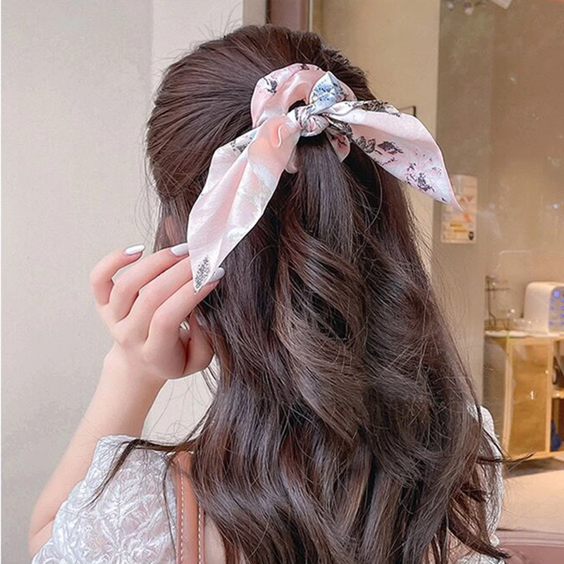 Женская шифоновая резинка для волос, однотонная эластичная повязка на голову с бантом, аксессуар для волос