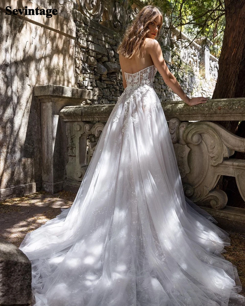 Свадебные платья Sevintage с разрезом по бокам в стиле бохо, свадебные платья с открытой спиной в богемном стиле, ТРАПЕЦИЕВИДНОЕ свадебное платье