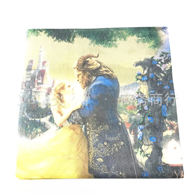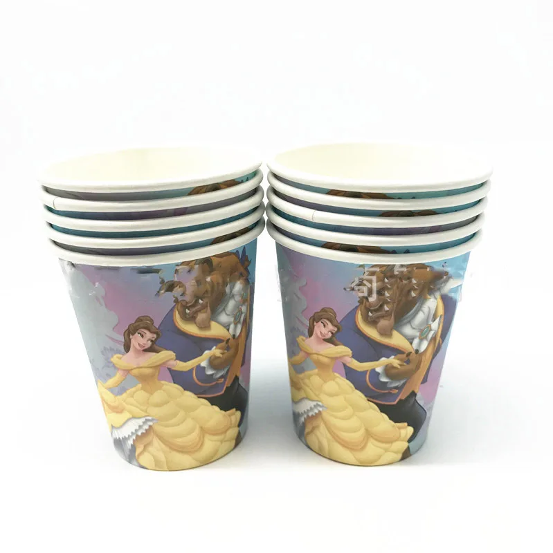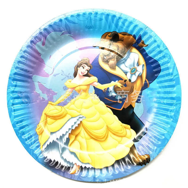 Принадлежности для дня рождения Красавица и чудовище, подарок для девочек, одноразовая посуда для будущей матери, тарелка, салфетка, баннер, соломенное украшение для вечеринки