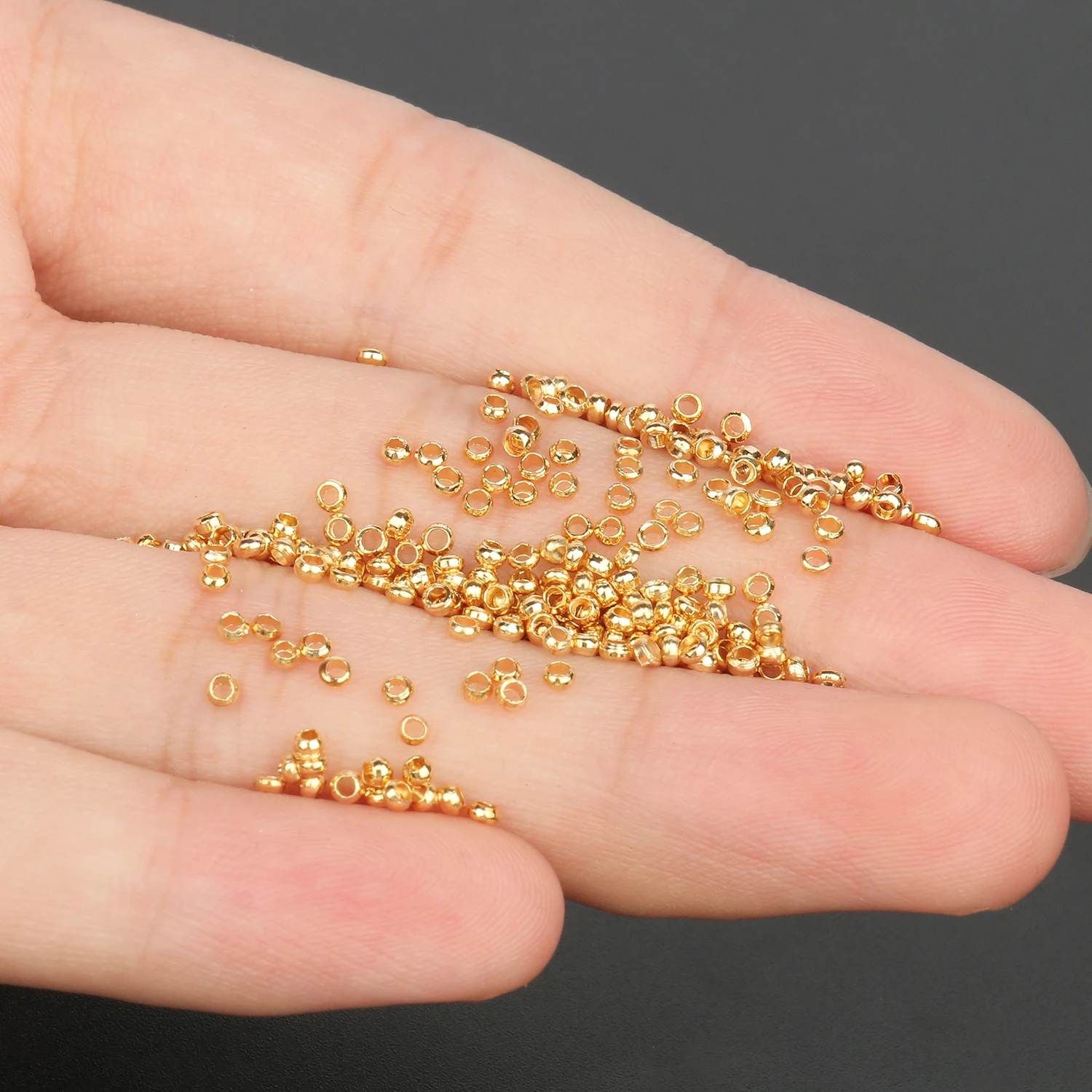 500-1000 шт.лот золотые Родиевые шарики обжимные концевые бусины диаметр 2 2,5 3 мм пробка разделительные бусины для Diy изготовления ювелирных изделий фурнитура