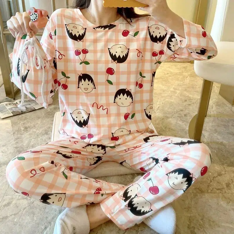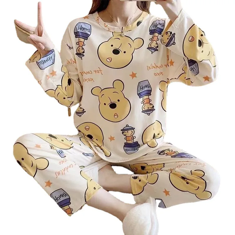 Пижама Ms 2021 на весну и осень и свободные брюки с длинным рукавом, новинка, летняя Милая одежда для отдыха с мультяшным принтом