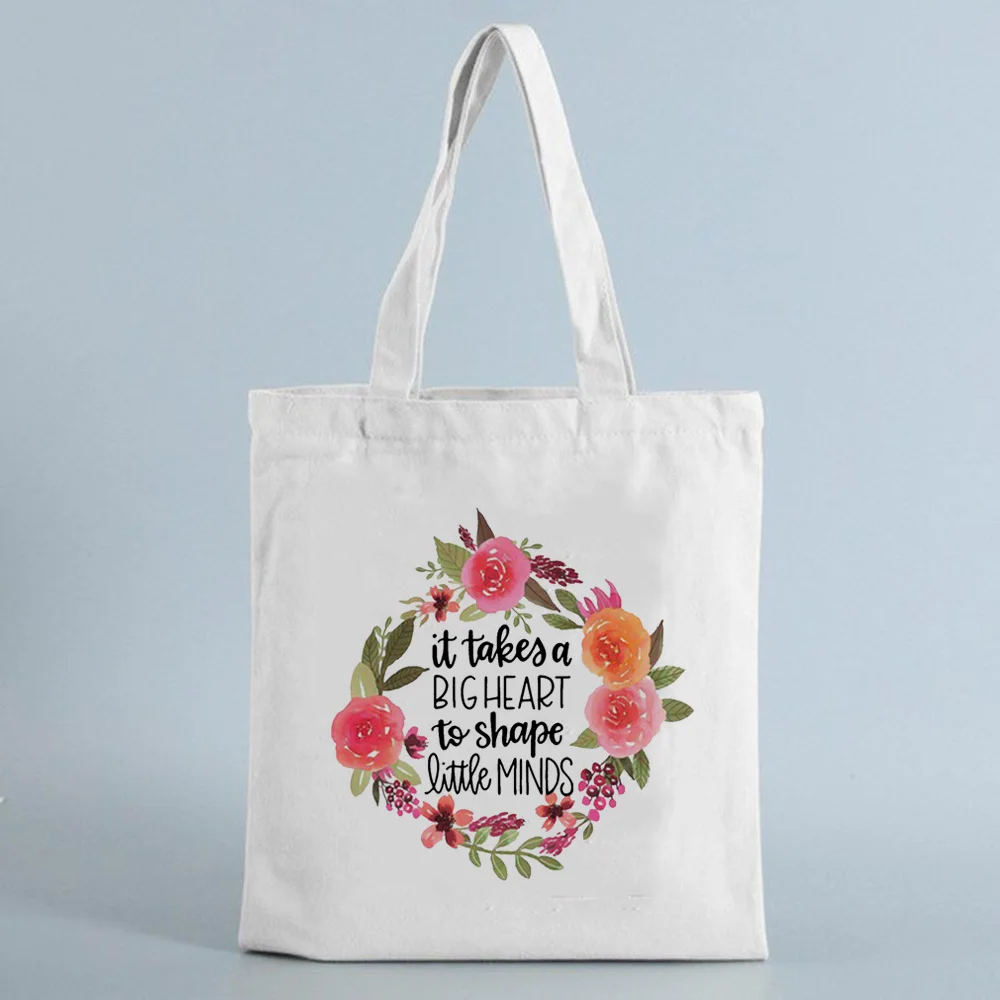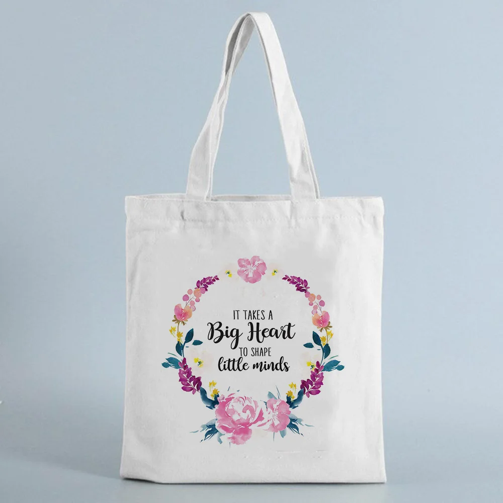 Холщовая многоразовая сумка для покупок в форме сердца, сумка-тоут на плечо для учителей, модный подарок