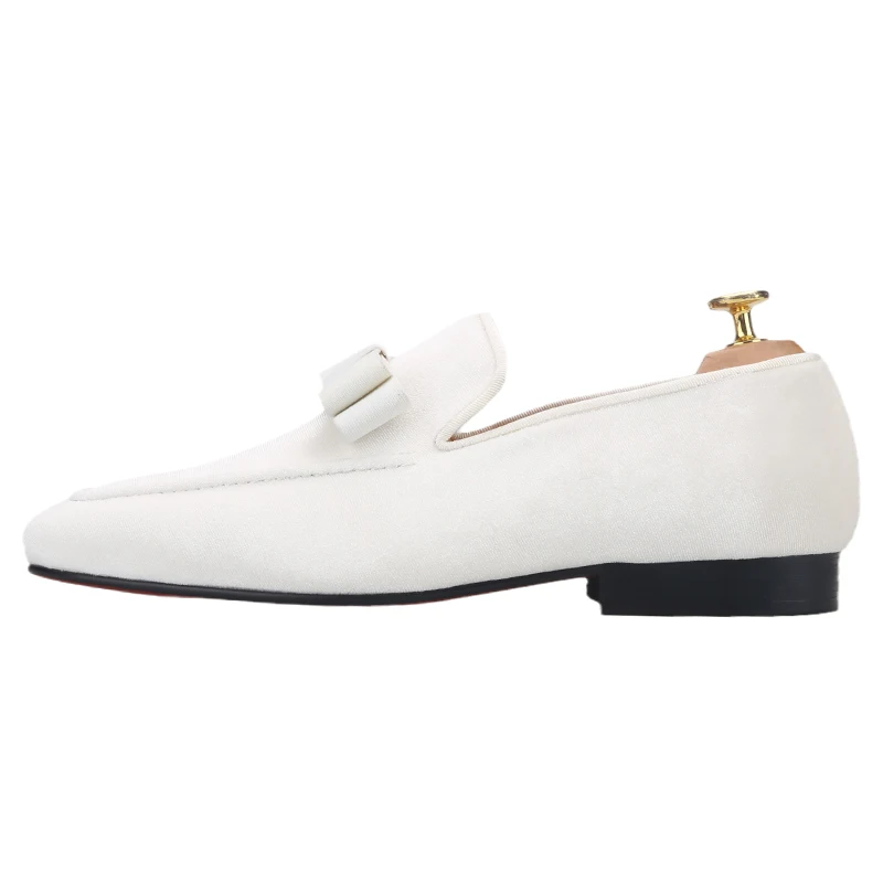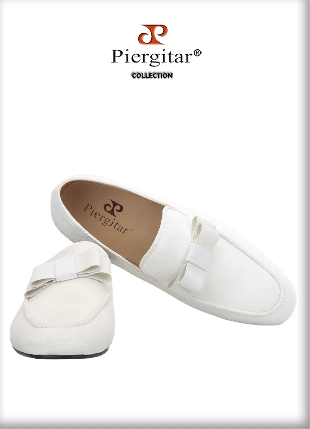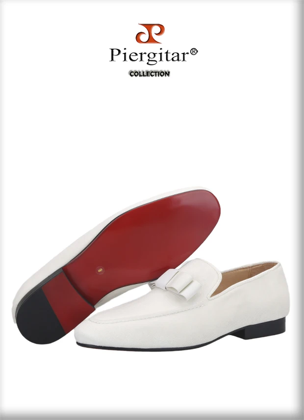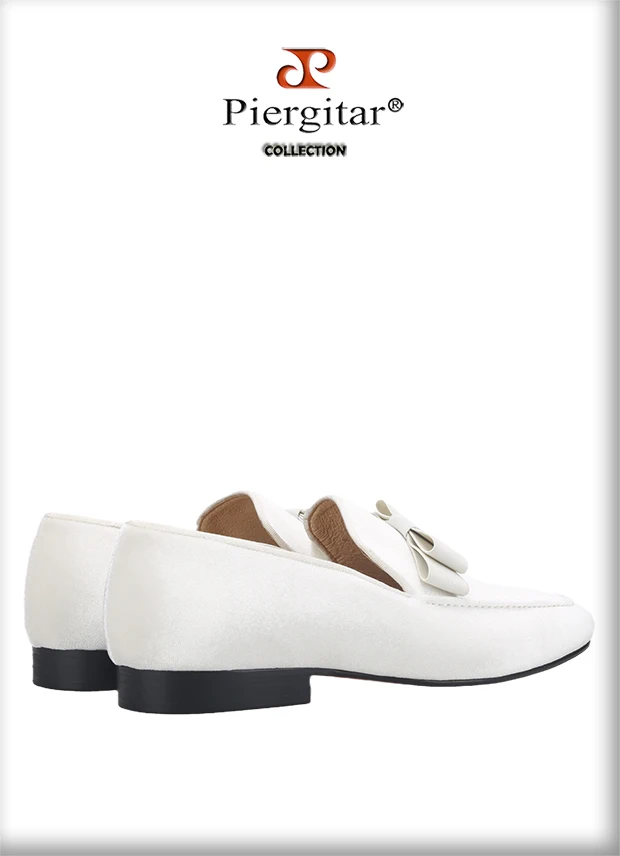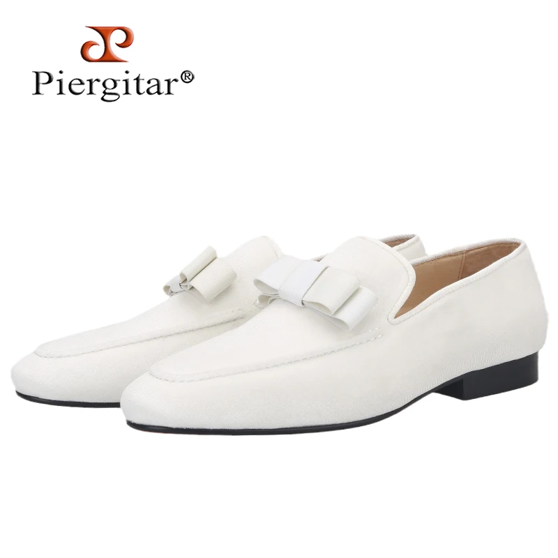 Новое поступление, белые бархатные мужские лоферы Piergitar ручной работы с бантом, мужские курительные тапочки для вечерние НКИ и свадьбы с красной подошвой