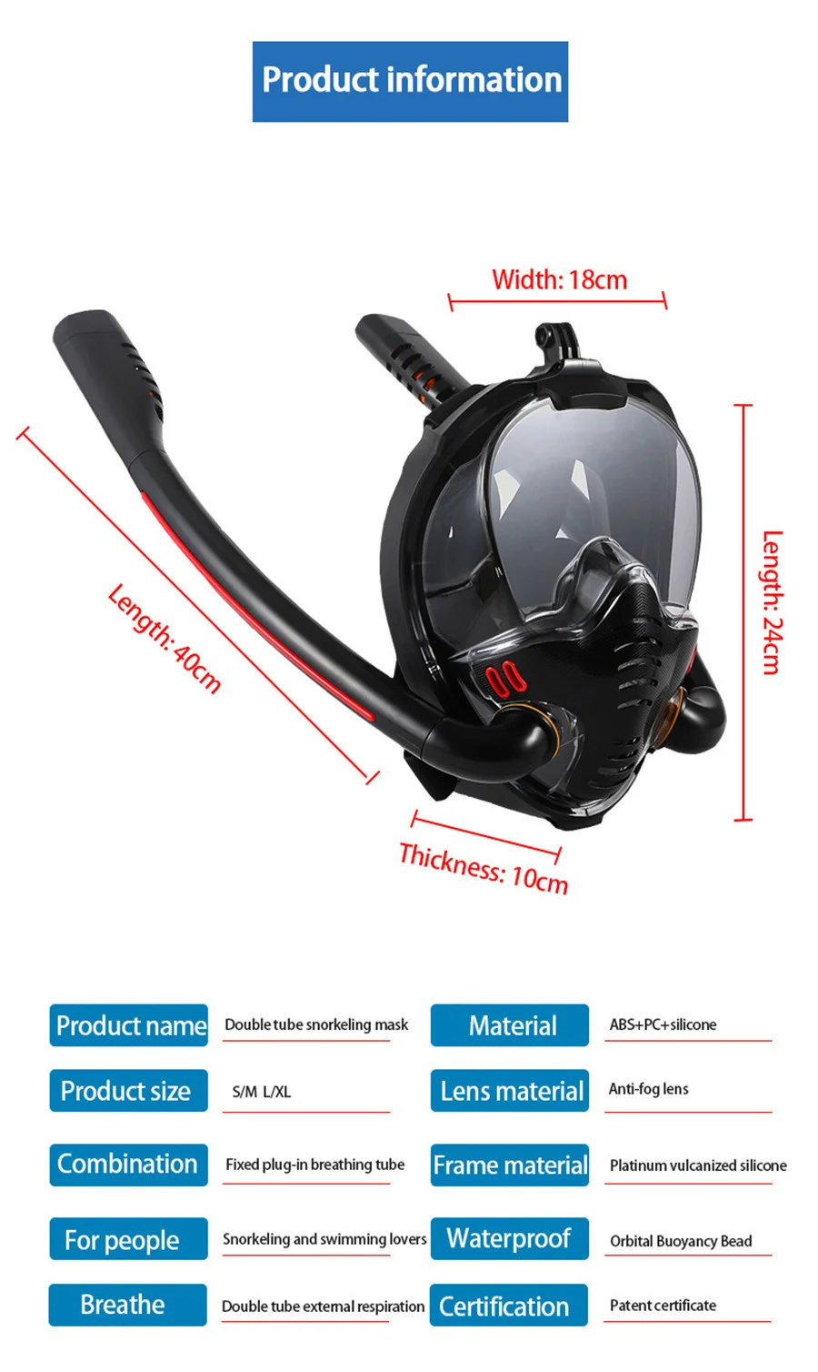 2. Маска для дайвинга для лица изготовлена из высококачественного поликарбоната и медицинского силикагеля. Нетоксичная и Экологически чистая, она может предотвратить аллергию на кожу или другие проблемы с кожей, вызванные сырьем.