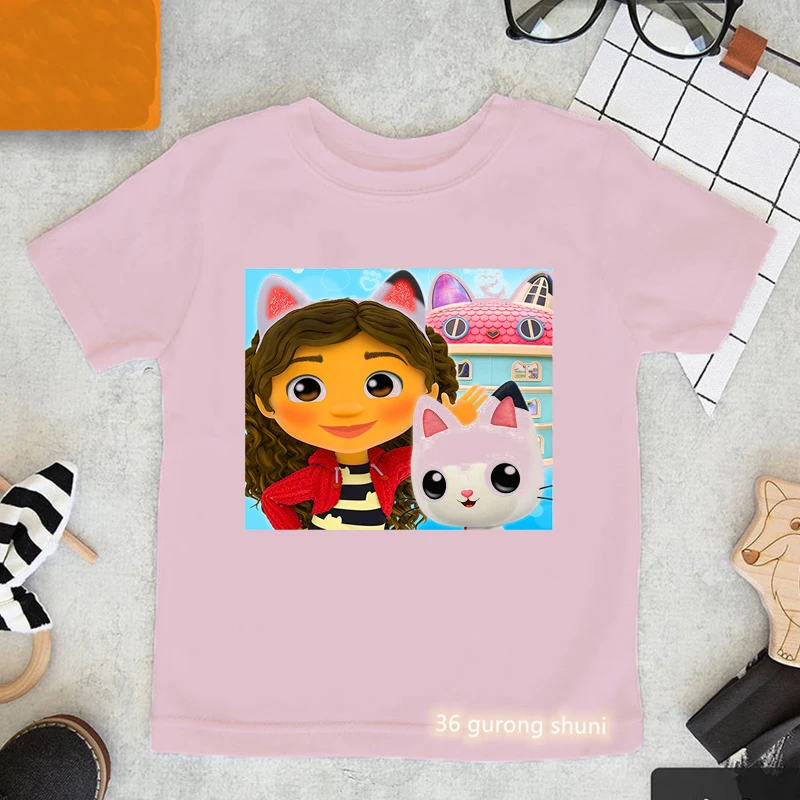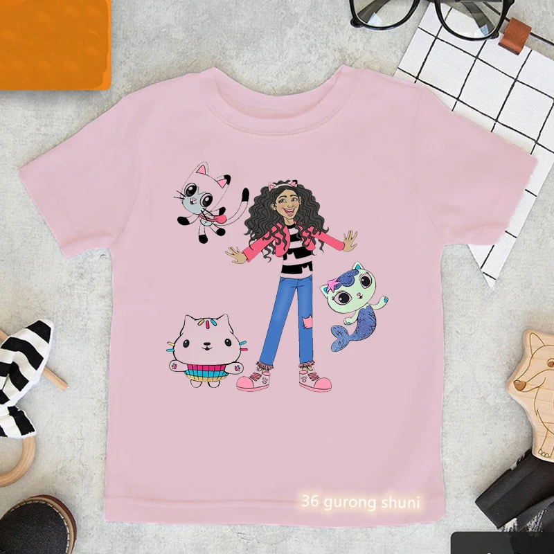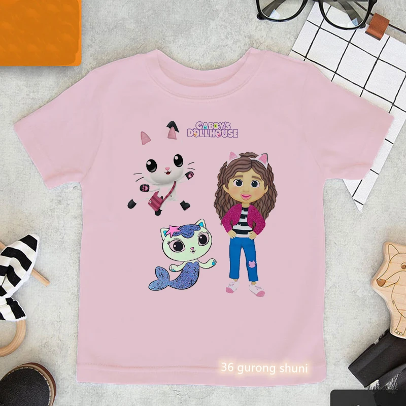 Футболка Gabby с мультяшным принтом кукольного домика, милая детска...