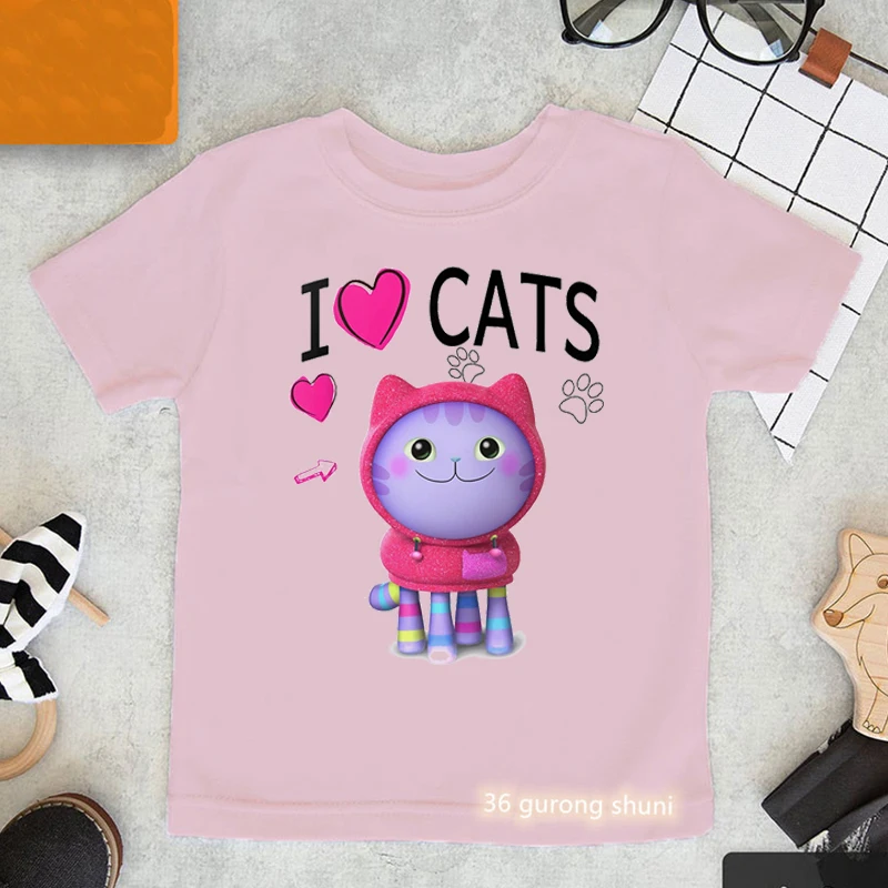 Футболка с графическим принтом я люблю кошек топы для девочек Габби...