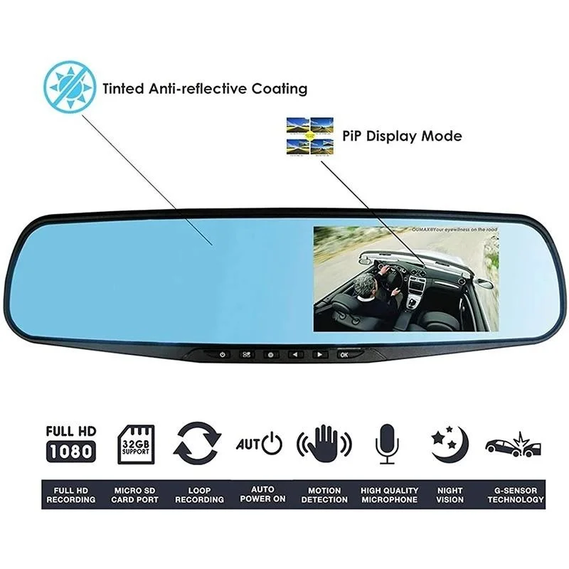 Full Hd 1080p камера DVR автомобильное зеркало заднего вида 4,3 дюйма приборная панель камера Запись круговой движения отслеживание видео с двумя объективами