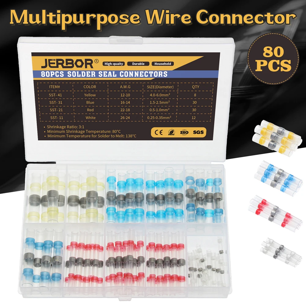 -Легкий и быстрый процесс: все-в-одном шаг припоя и процесс уплотнения. Нет необходимости в обжимных инструментах и паяльной машине. Таймер и беспорядок -Водонепроницаемость и изоляция: конструкция с двумя стенками-наружные полиолефиновые трубки обеспечивают изоляцию и повышают прочность на изгиб; Термоплавкий клей и припой внутри обеспечивают плотное соединение проводов и позволяют избежать выскальзывания проводов из терминала -Будьте организованны: Наши разъемы поставляются в ящике для хранения, легко хранить и переносить. Цветная трубка позволяет легко определить правильный размер соединителя для каждого применения -Широкое применение: Коэффициент усадки: 3:1. Идеально подходит для автомобилей, лодок, морских и других видов применения на открытом воздухе