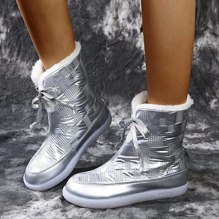 Зимние Модные Женские зимние ботинки, серебристые теплые ботинки, короткие сапоги для женщин на осень и зиму