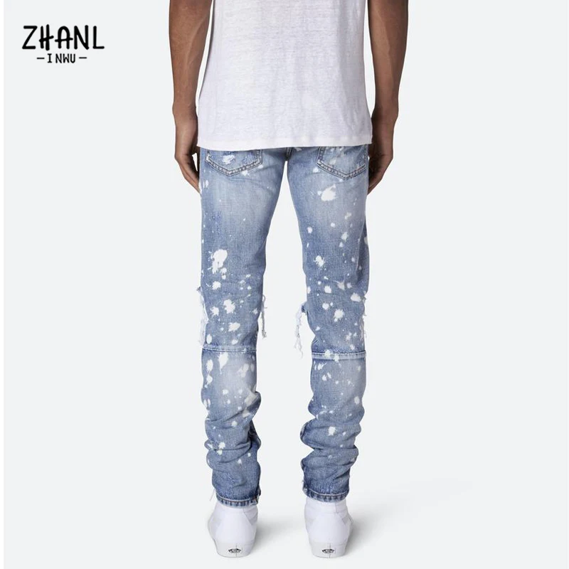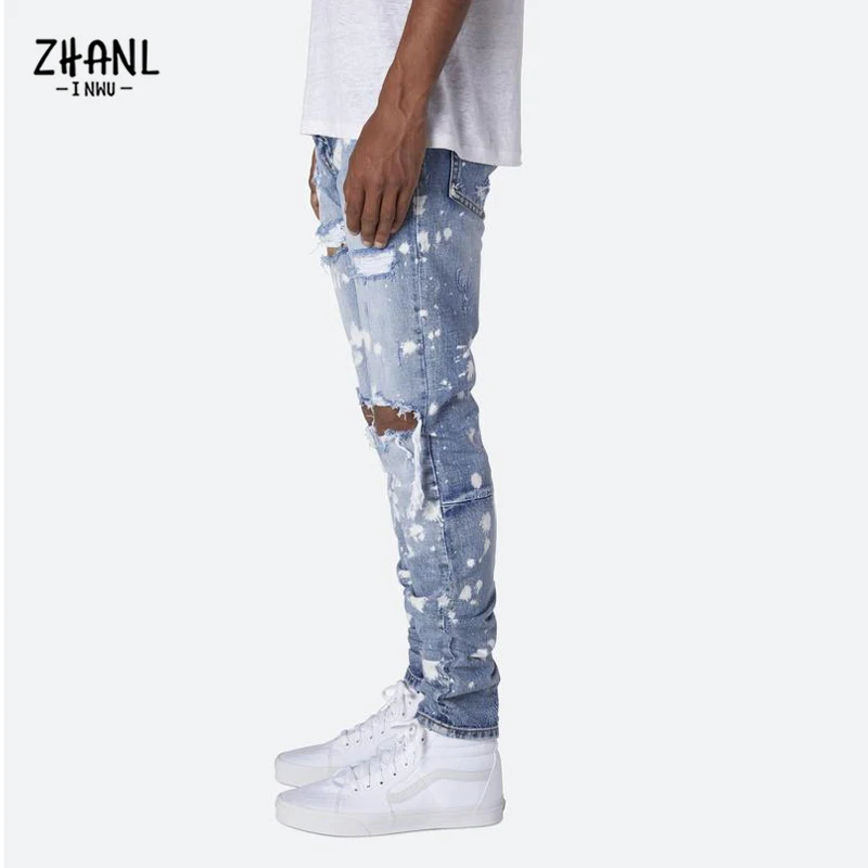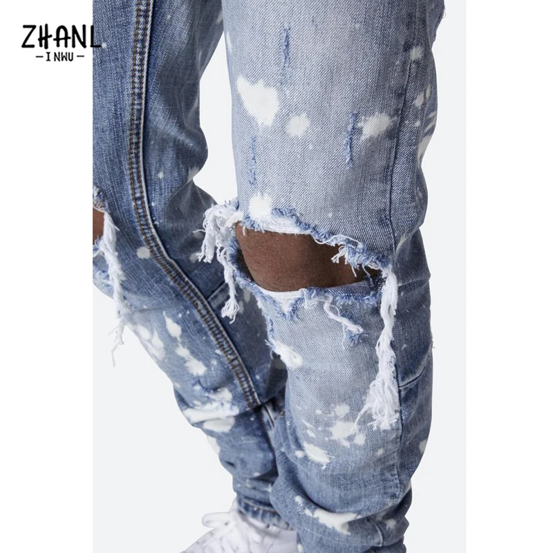 Узкие рваные мужские джинсы, модные рисунки в стиле хип-хоп