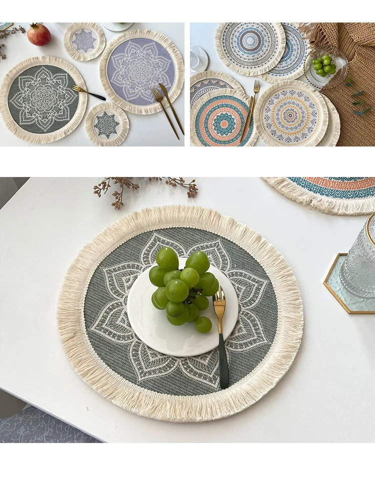 Круглый коврик для стола в богемном стиле, хлопковая салфетка с бахромой, теплоизоляционный коврик, домашний декоративный коврик