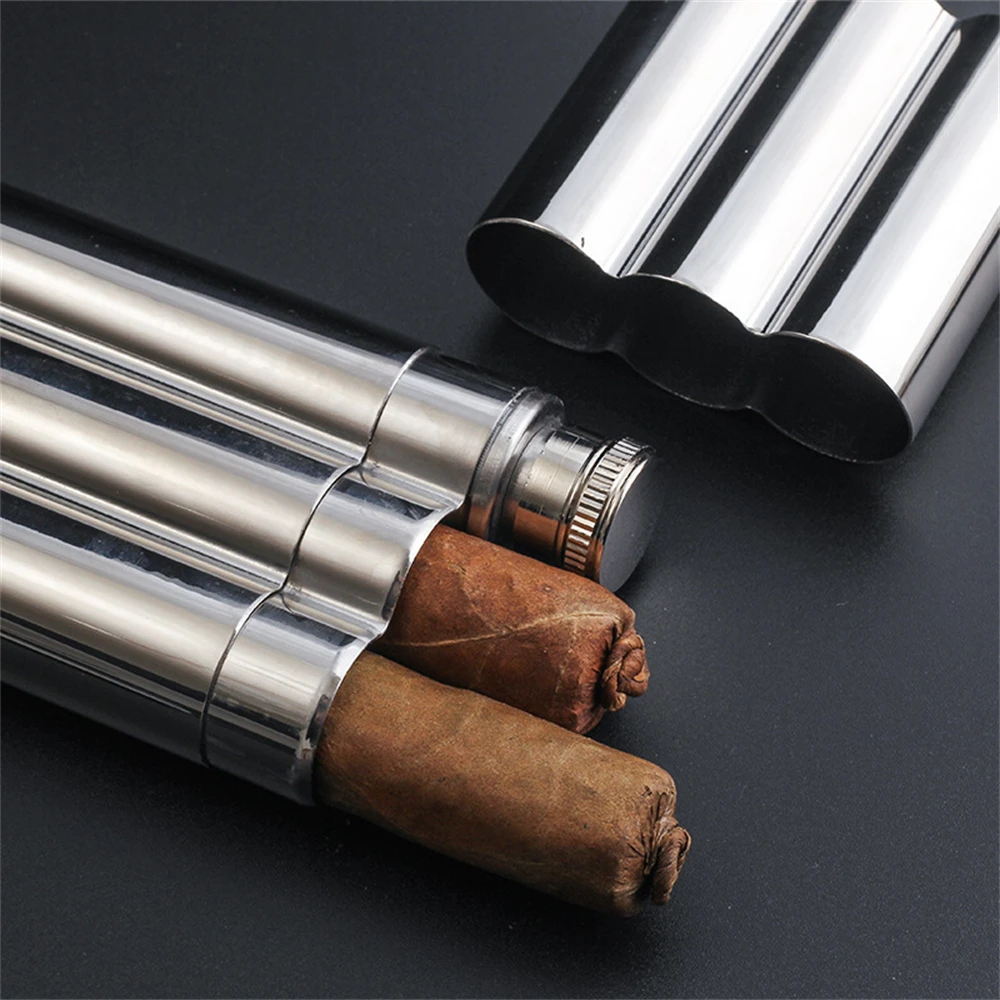Трубка для сигар из нержавеющей стали с флагоном, многофункциональные портативные трубки для сигар, металлический корпус, кубинский хьюмидор для сигар с защитой от давления