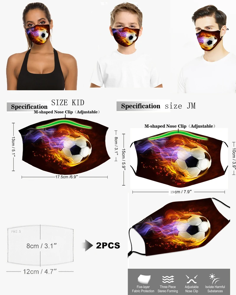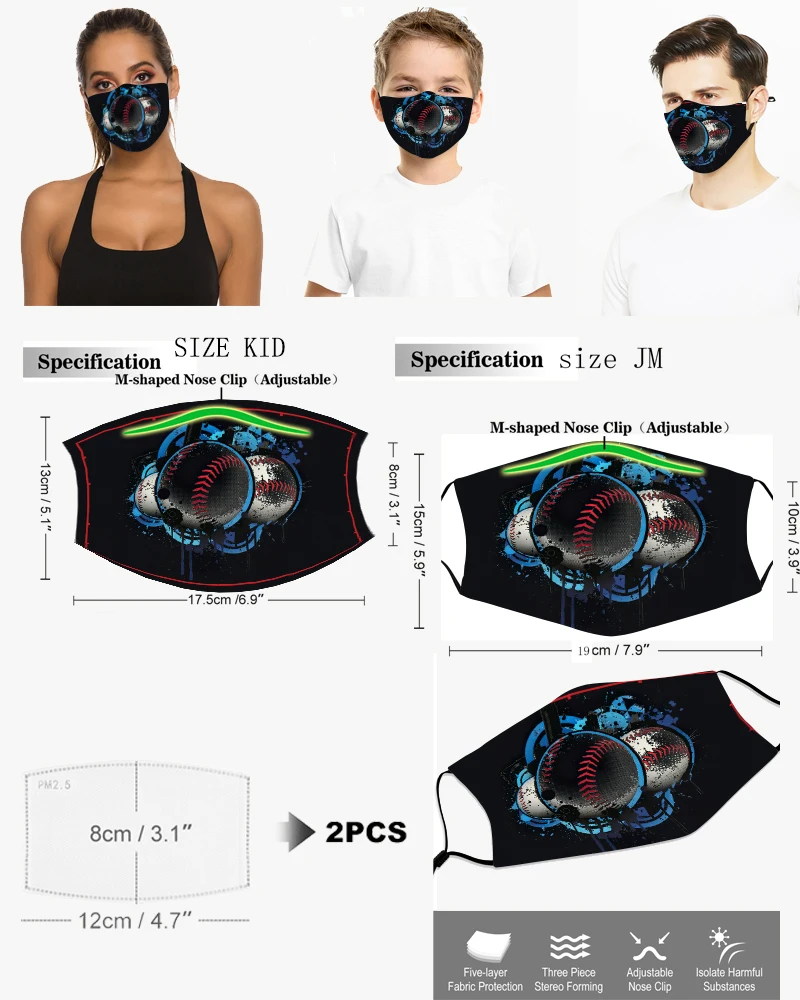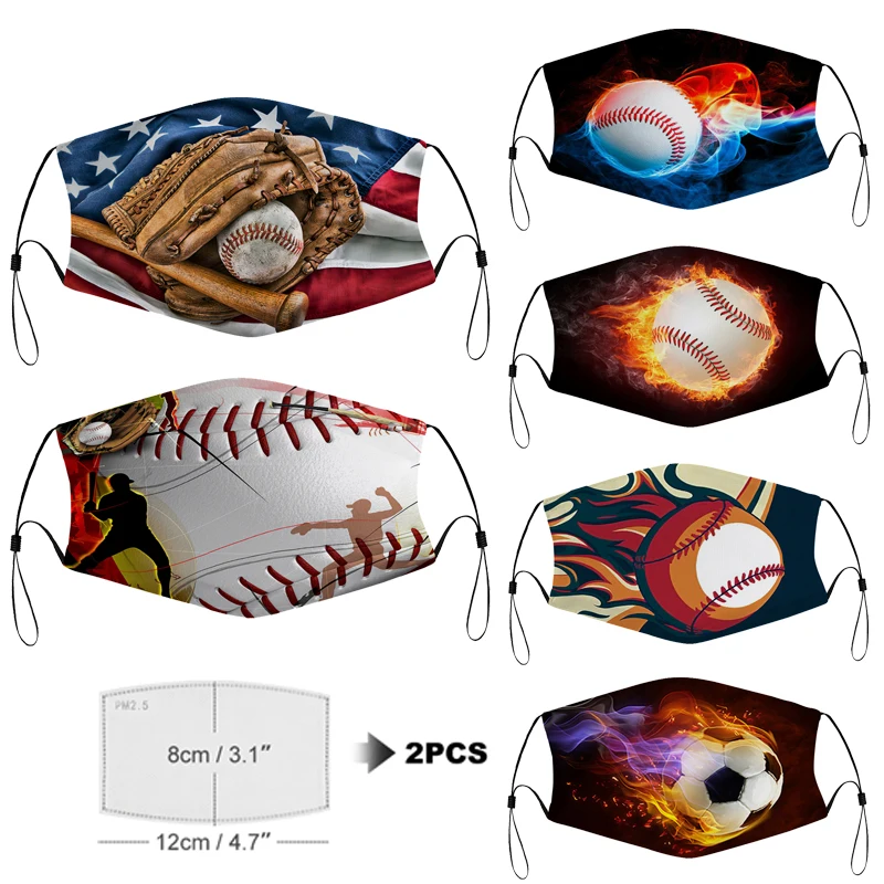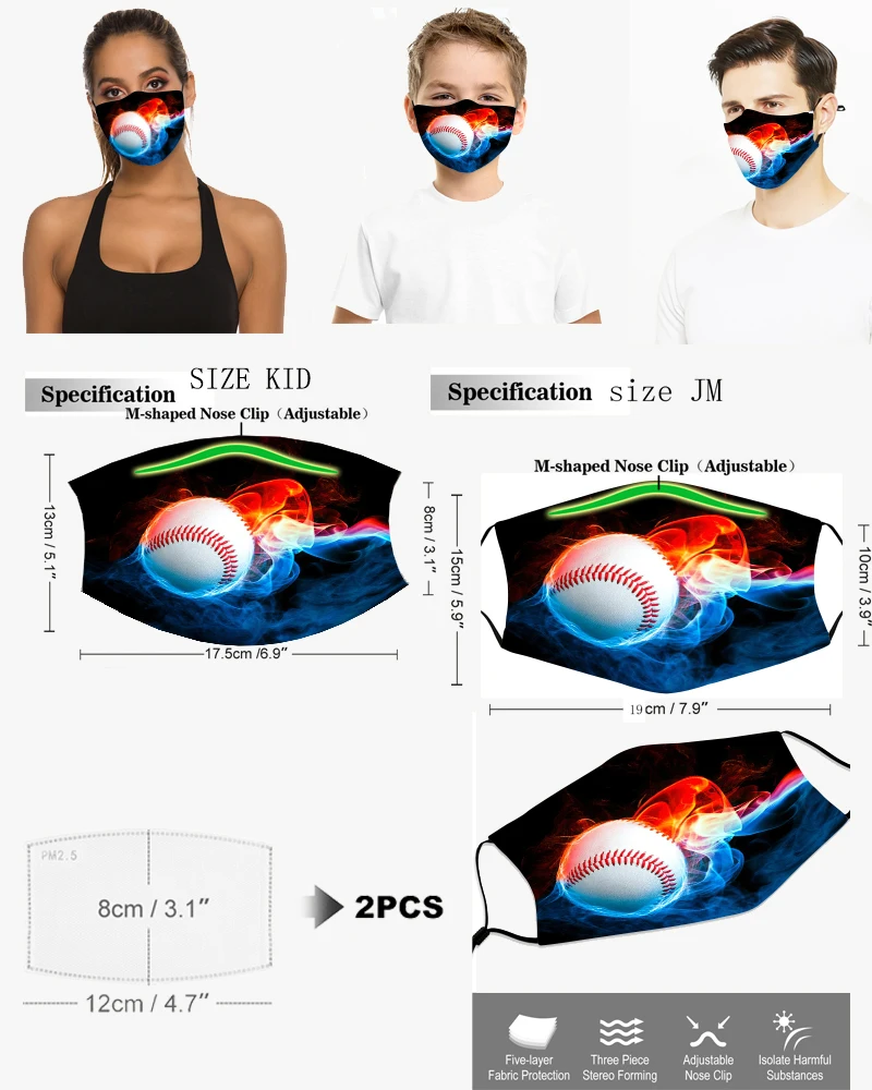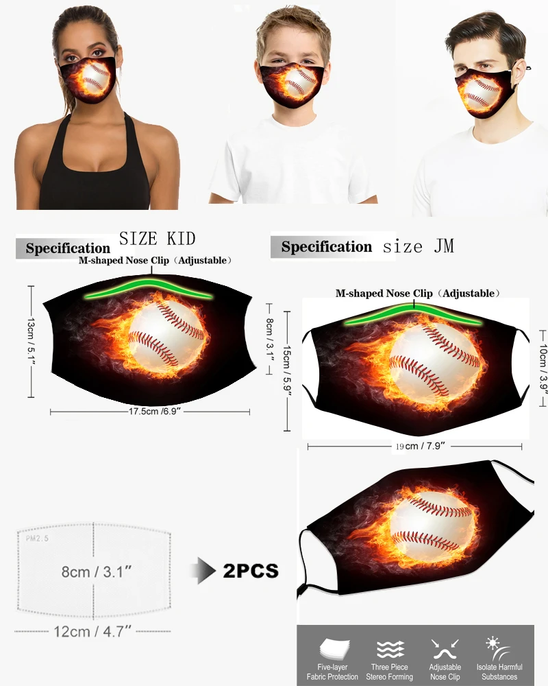 3D бейсбольные огненные спецэффекты, Детские маски, модные маски для взрослых, моющиеся маски с 3d принтом, многоразовые маски