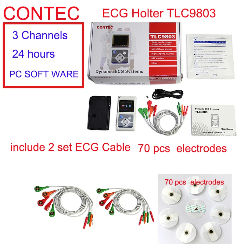 CONTEC ECG Holter динамическая система контроля ЭКГ 24-часовой диктофон ЭКГ TLC 9803 бесплатный Дополнительный свинцовый провод и электроды