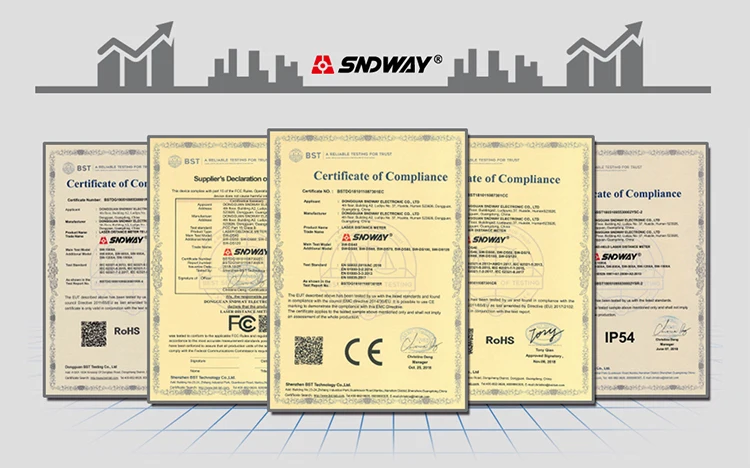 SNDWAY на протяжении многих лет занимается исследованиями и разработками, производством, продажей и обслуживанием портативных лазерных дальномеров, экологических измерительных приборов и неразрушающих испытательных инструментов. Бренд охватывает все отрасли, такие как аппаратные инструменты, инструменты, геодезирование и картографирование, домашнее улучшение и строительные материалы.После того, как каждый продукт будет разработан, он пройдет долгий период тестирования и регулировки. Каждый продукт рождается после тысяч испытаний, обдумывания, отладки и обрезки. Sndway всегда придерживается концепции принятия пользователей во-первых, создавая больше продуктов, которые могут изменить метод измерения для пользователей.