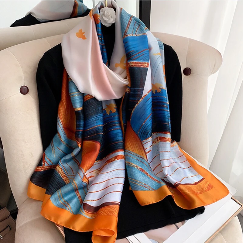 Весна 2022, шали С Пылезащитным принтом, зимние атласные шарфы в эт...