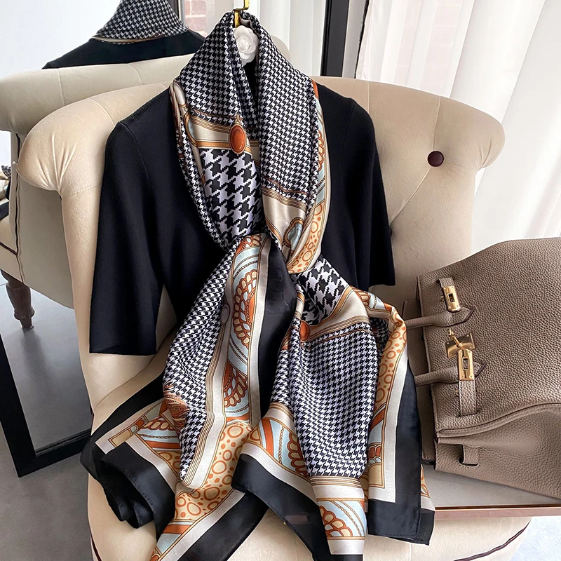 2022 модный роскошный фирменный шарф, Женская Цепочка-каретка, шелк...