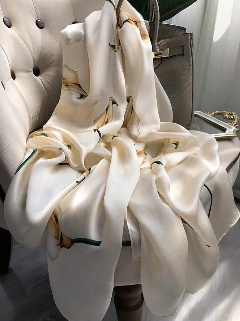 Женский Шелковый зимний шарф, роскошный дизайн, женская пляжная шал...