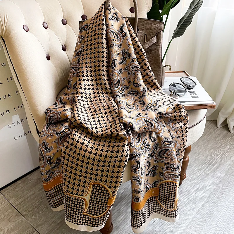 2021 женский Шелковый зимний шарф, роскошный дизайн, женская пляжная шаль с принтом, шарфы, модный гладкий платок, Женский хиджаб
