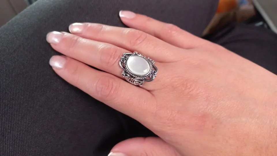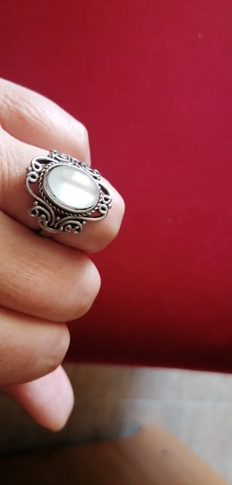 Это определенно не лунный камень, это очень легкий пластик. На обратной стороне кольца отсутствует покрытие очень разочарован, но по такой цене его можно ожидать
