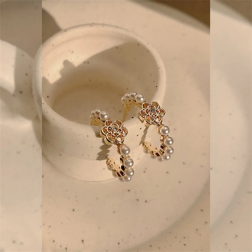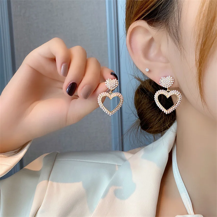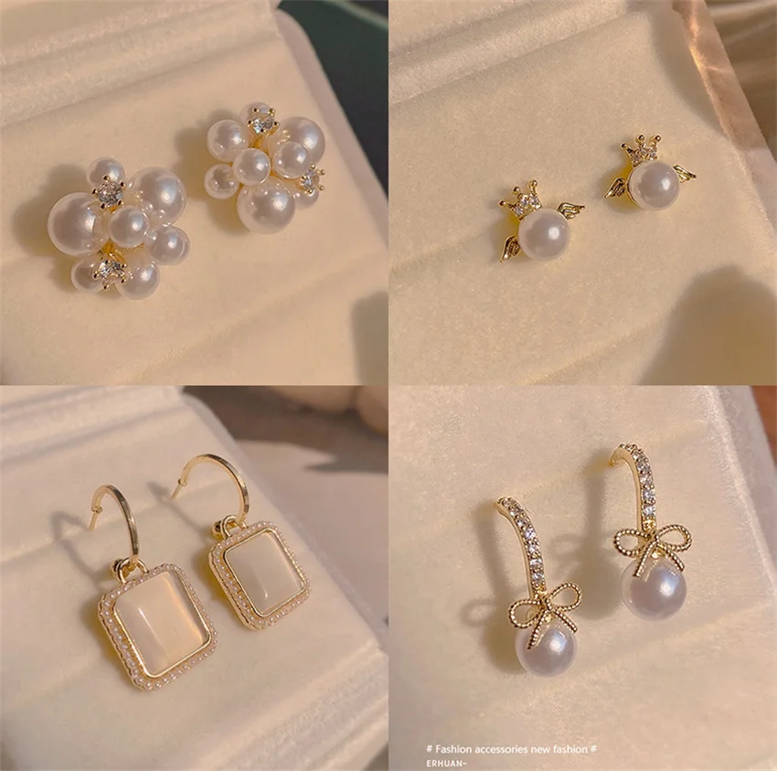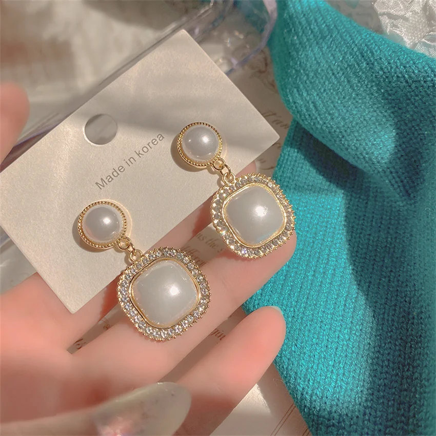 Длинные серьги с имитацией жемчуга, женские серьги-подвески в виде месяца, звезды, цветов, стразы, свадебные серьги, серьги