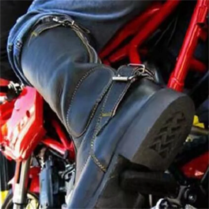 Мужские мотоциклетные ботинки, высокие рыцарские сапоги с пряжкой, дизайнерские черные, с круглым носком, в европейском и американском стиле