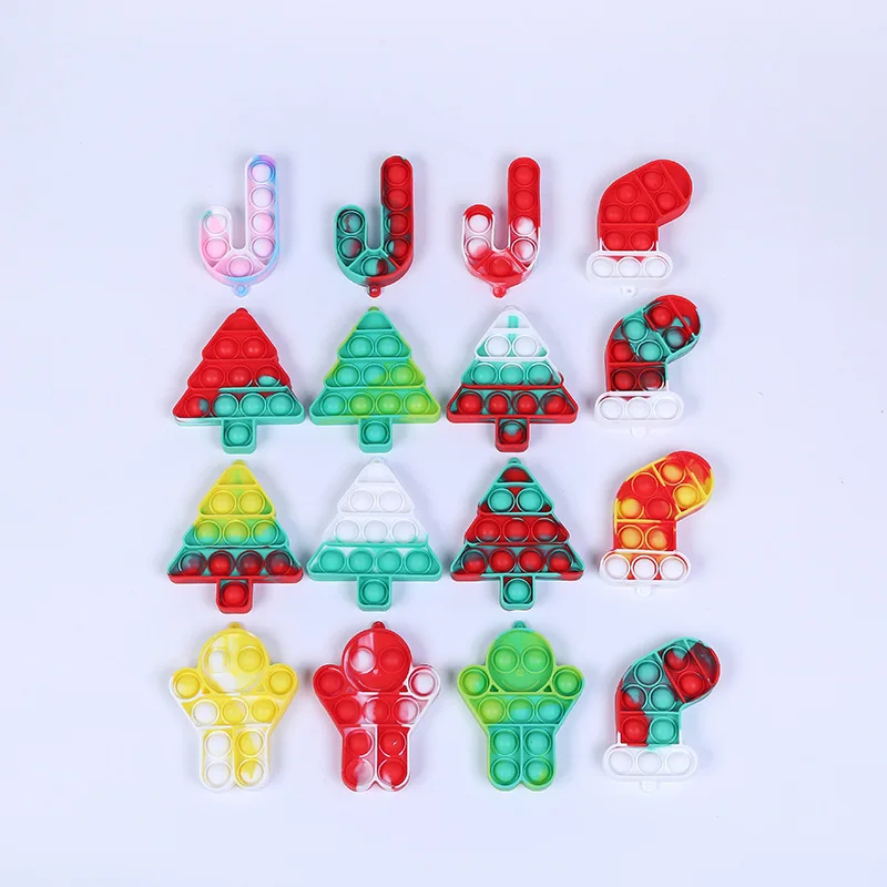 Новинка, Рождественская мини-игрушка, игрушка-игрушка, игрушка-Поппер, брелок с пузырьками, игрушка-Непоседа, сенсорная игрушка, простая силиконовая Радужная игрушка-Поппер, сжимаемая игрушка