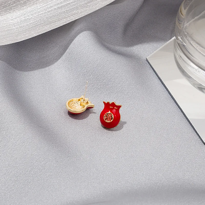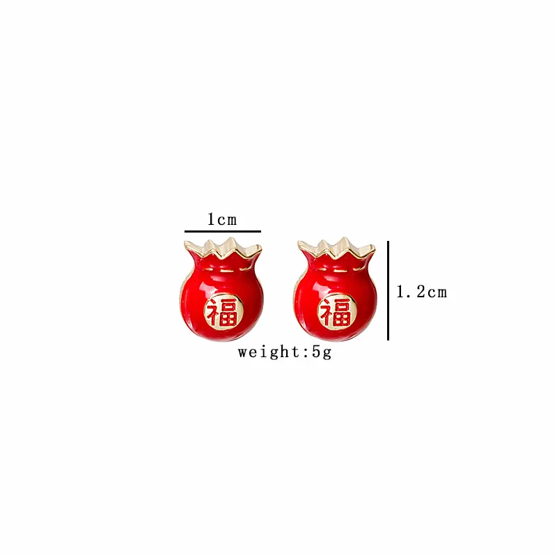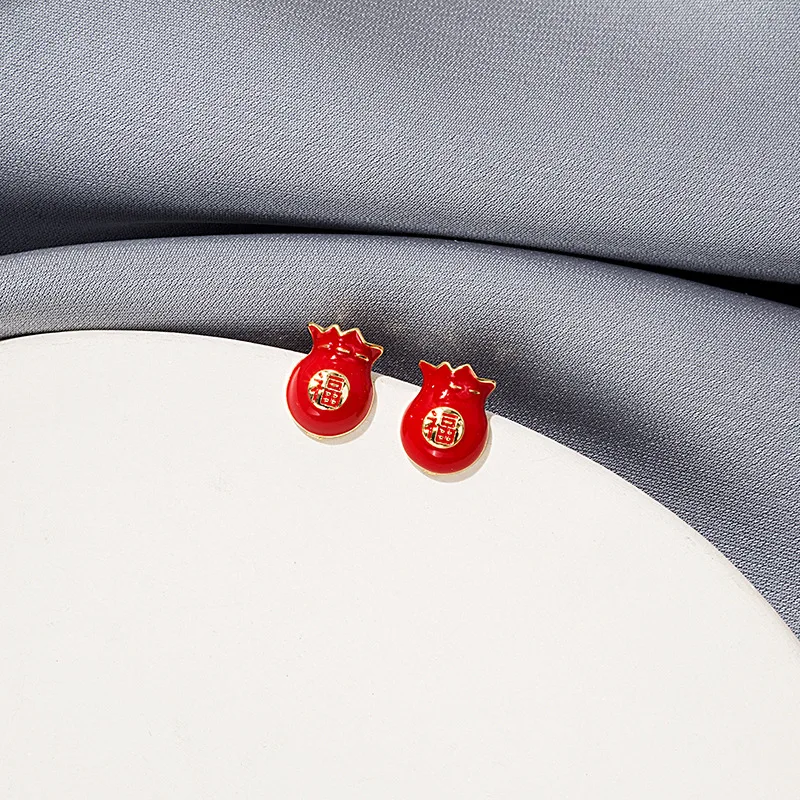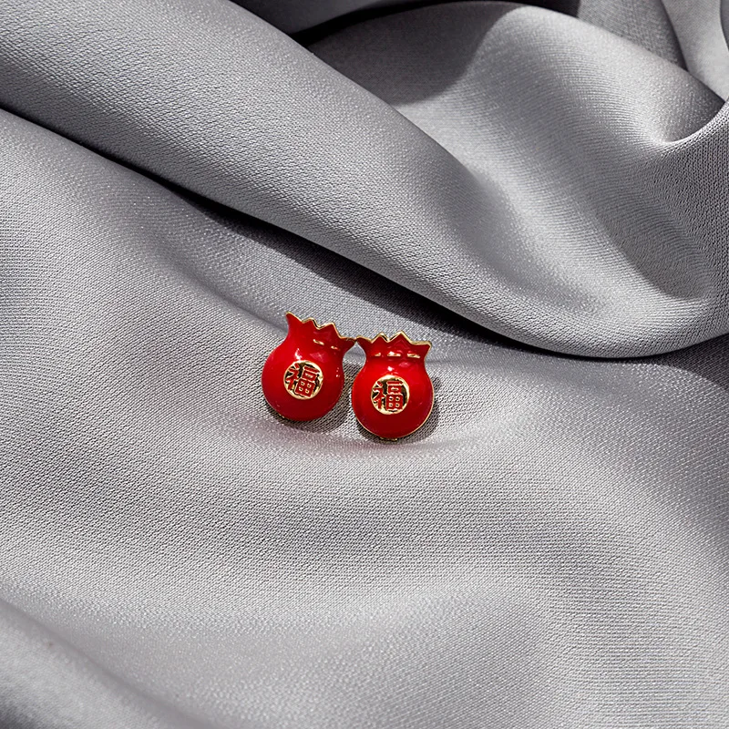 Серьги-гвоздики на удачу в китайском и новогоднем стиле для женщин, модные весенние, праздничные и праздничные серьги для девочек, ювелирные изделия