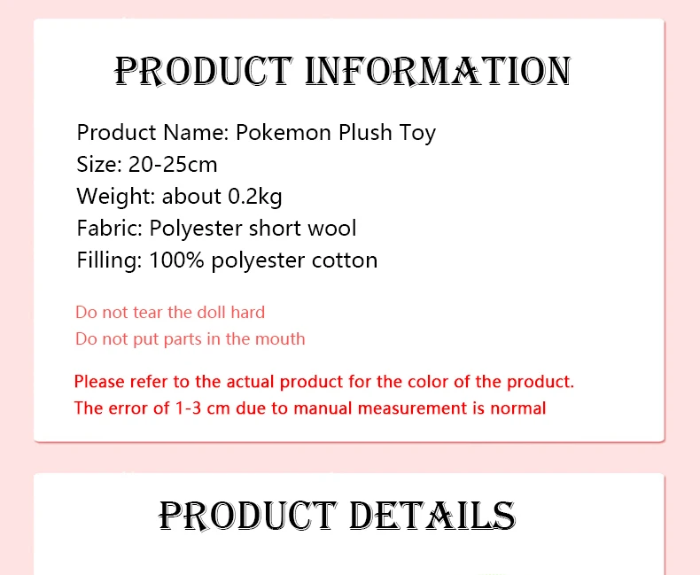 Предупреждениеpokemon plush doll pikachu stuffed toy
