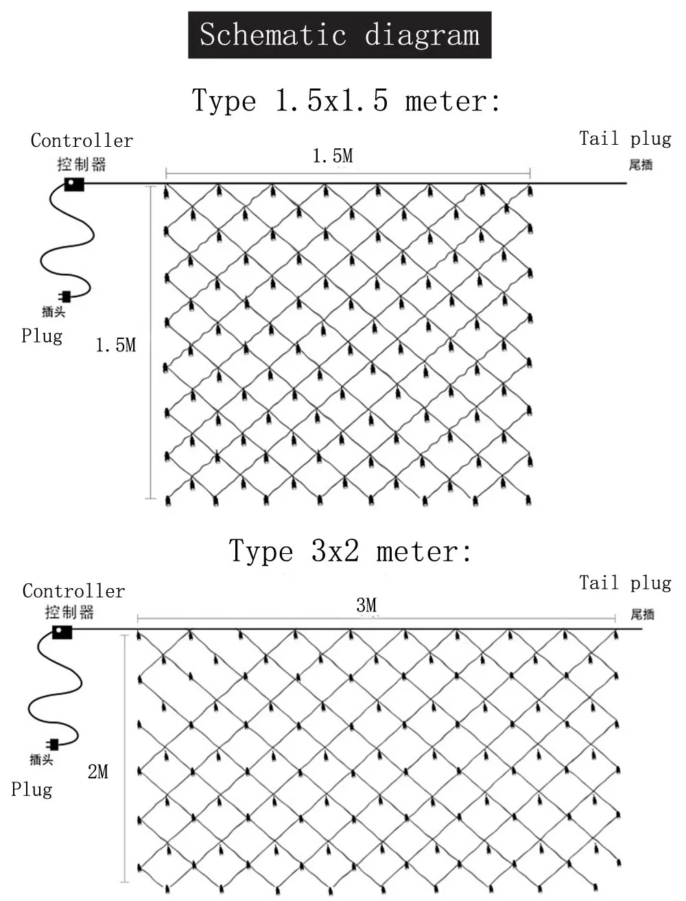 Рождественская гирлянда 4 м x 6 м 1, 5 м x 1,5 м 2x3 м, светодиодна...