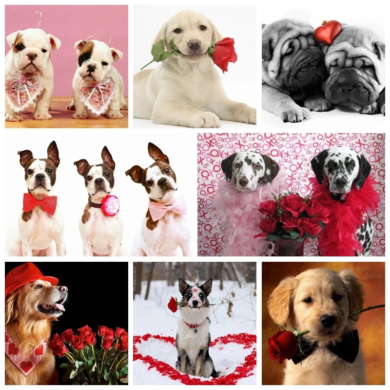 5D алмазная живопись, вышивка в виде собак на День святого Валентина, картина стразы, мозаика, вышивка крестиком, ручная работа, подарок, украшение для дома
