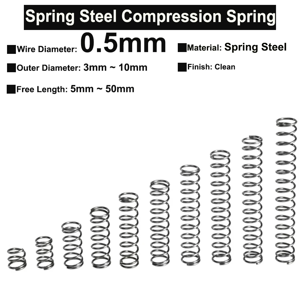 10 шт., пружинная сталь, диаметр проволоки мм, крошечная компрессионная пружина OD 3 мм 10 мм, свободная длина 5 мм 50 мм