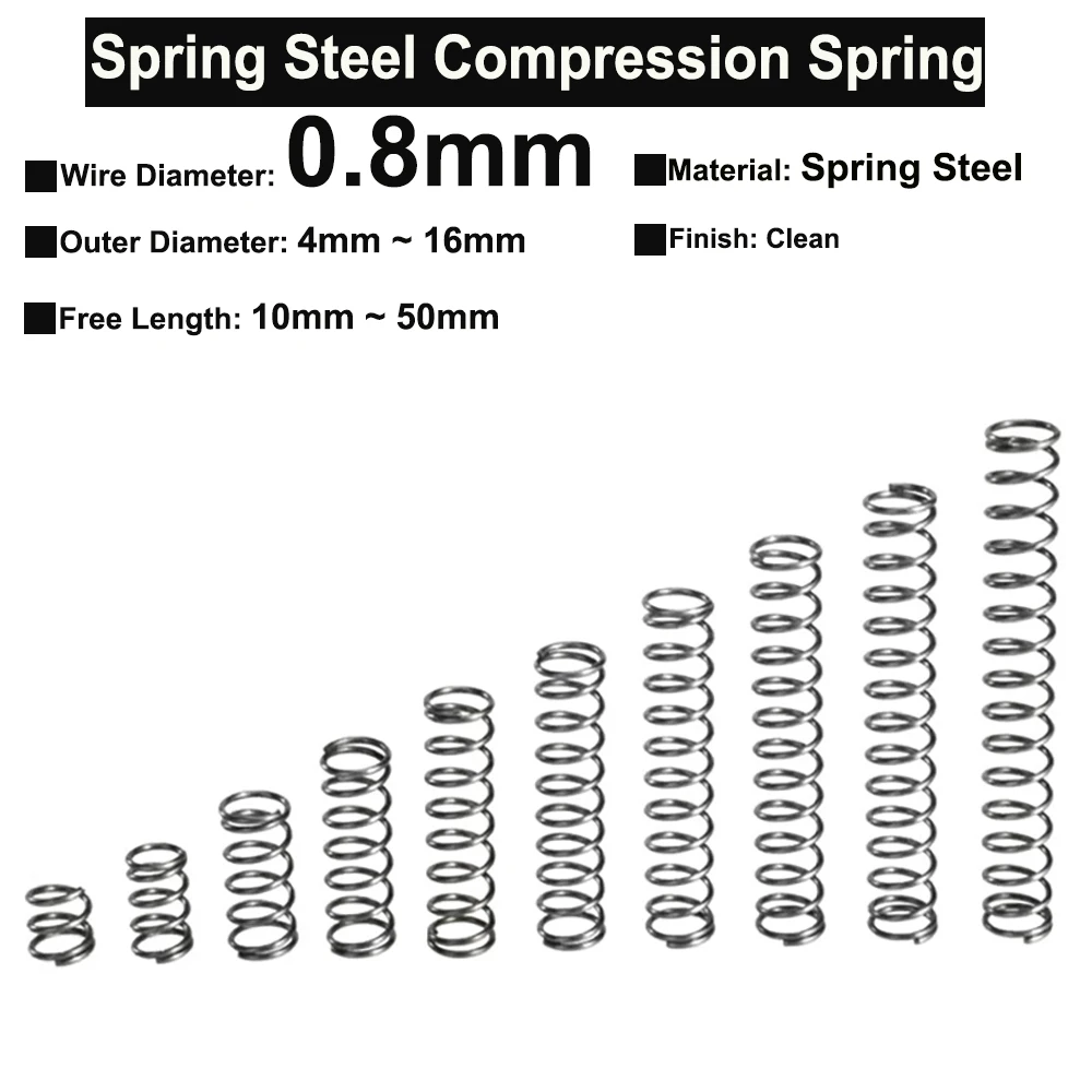 10 шт. диаметр проволоки 0.80.8мм пружинная стальная пружина сжатия OD 4 мм ~ 16 мм Бесплатная длина 10 мм ~ 50 мм