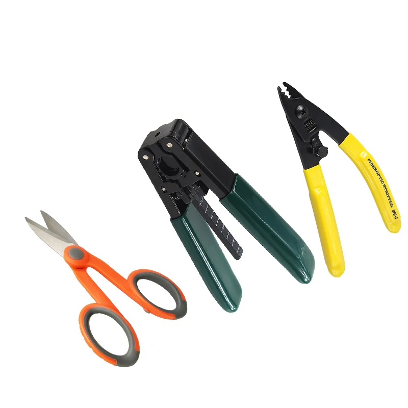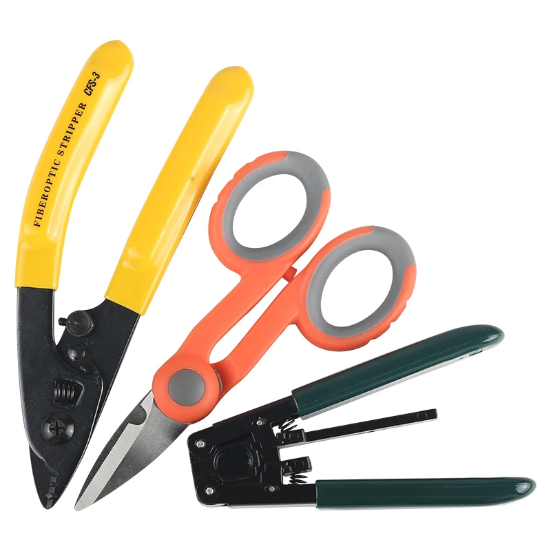 3 упаковки, технические кевларовые ножницы, плоскогубцы с двойным отверстием, устройство для зачистки оптических волокон
