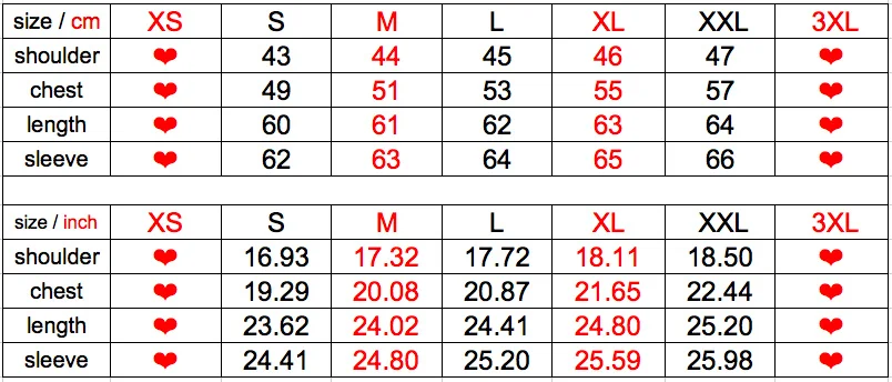 Пожалуйста, проверьте таблицу размеров и измерьте вашу куртку, как показано ниже.