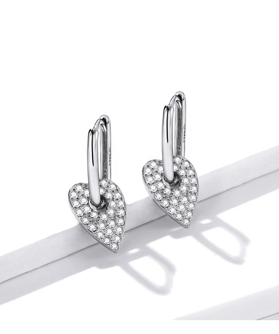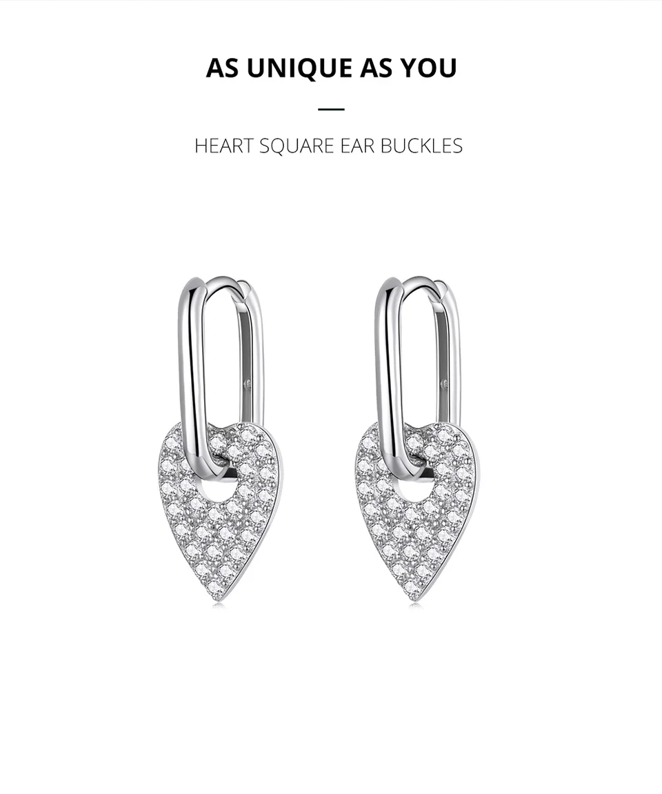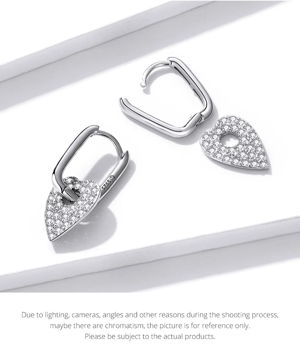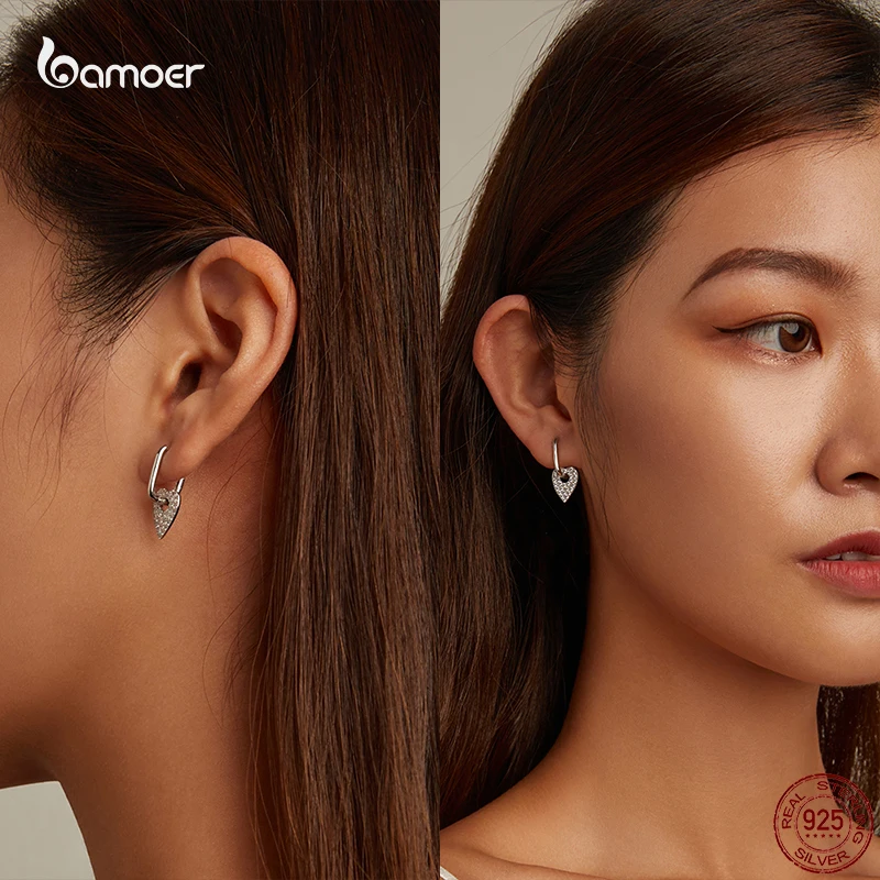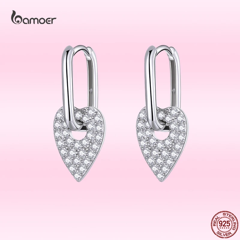 Bamoer, Настоящее серебро 925 пробы, сердце, квадратные пряжки для ушей, для женщин, изысканная любовь, кулон, циркон, серьги, хорошее ювелирное изделие, подарок