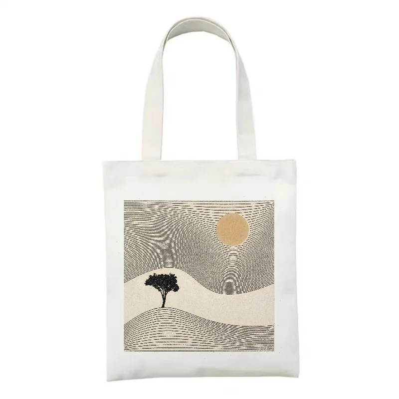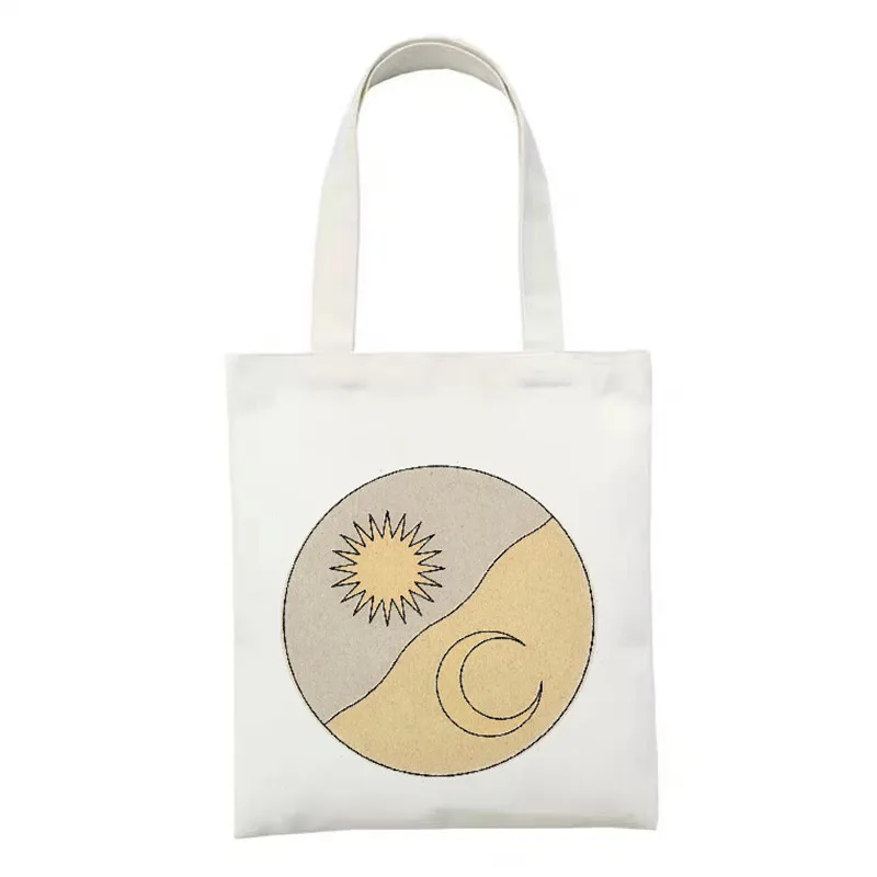 2022 женские сумки для покупок с принтом Солнца и Луны, сумочка с цветочным принтом в эстетике, холщовые сумки для покупок, вместительные сумки-тоуты