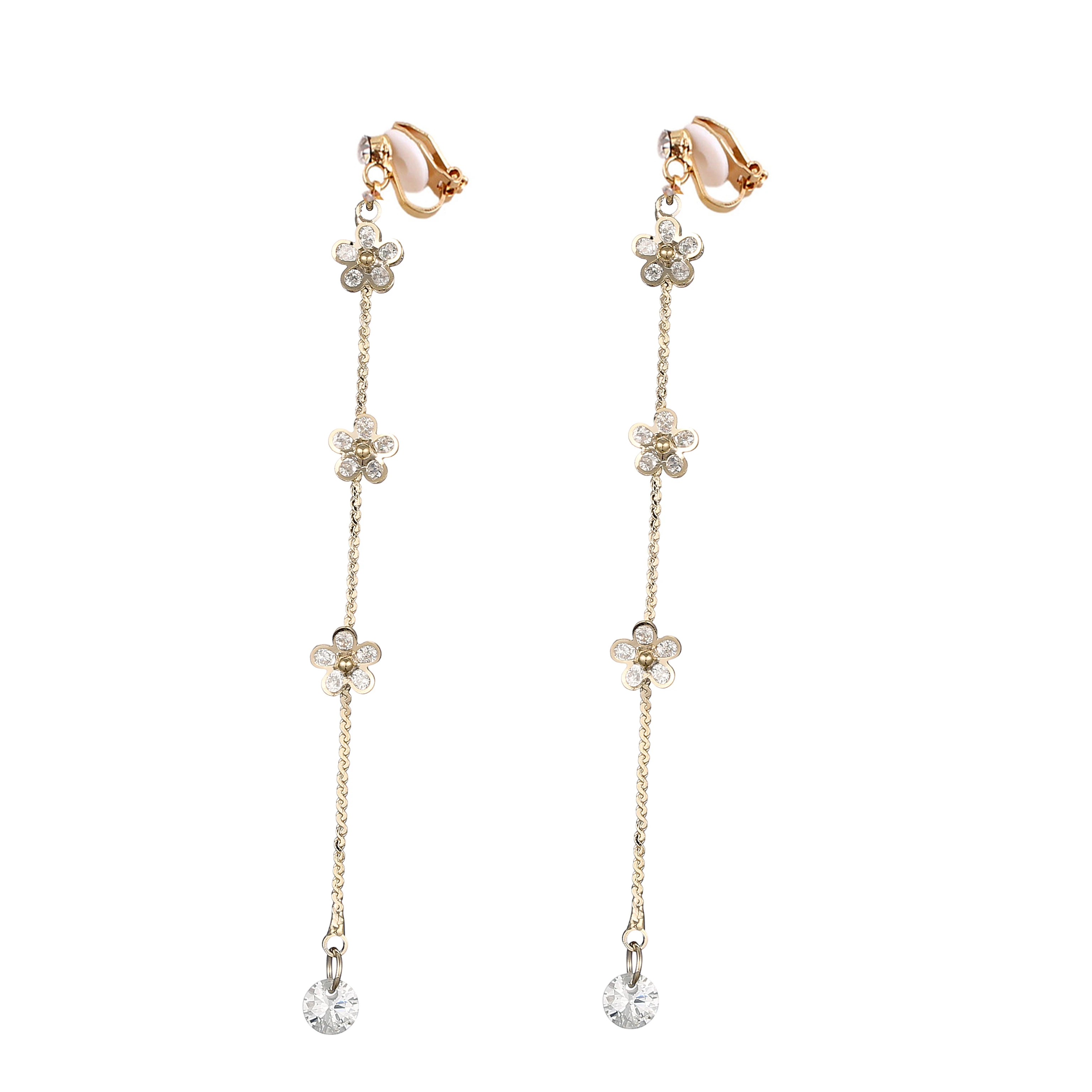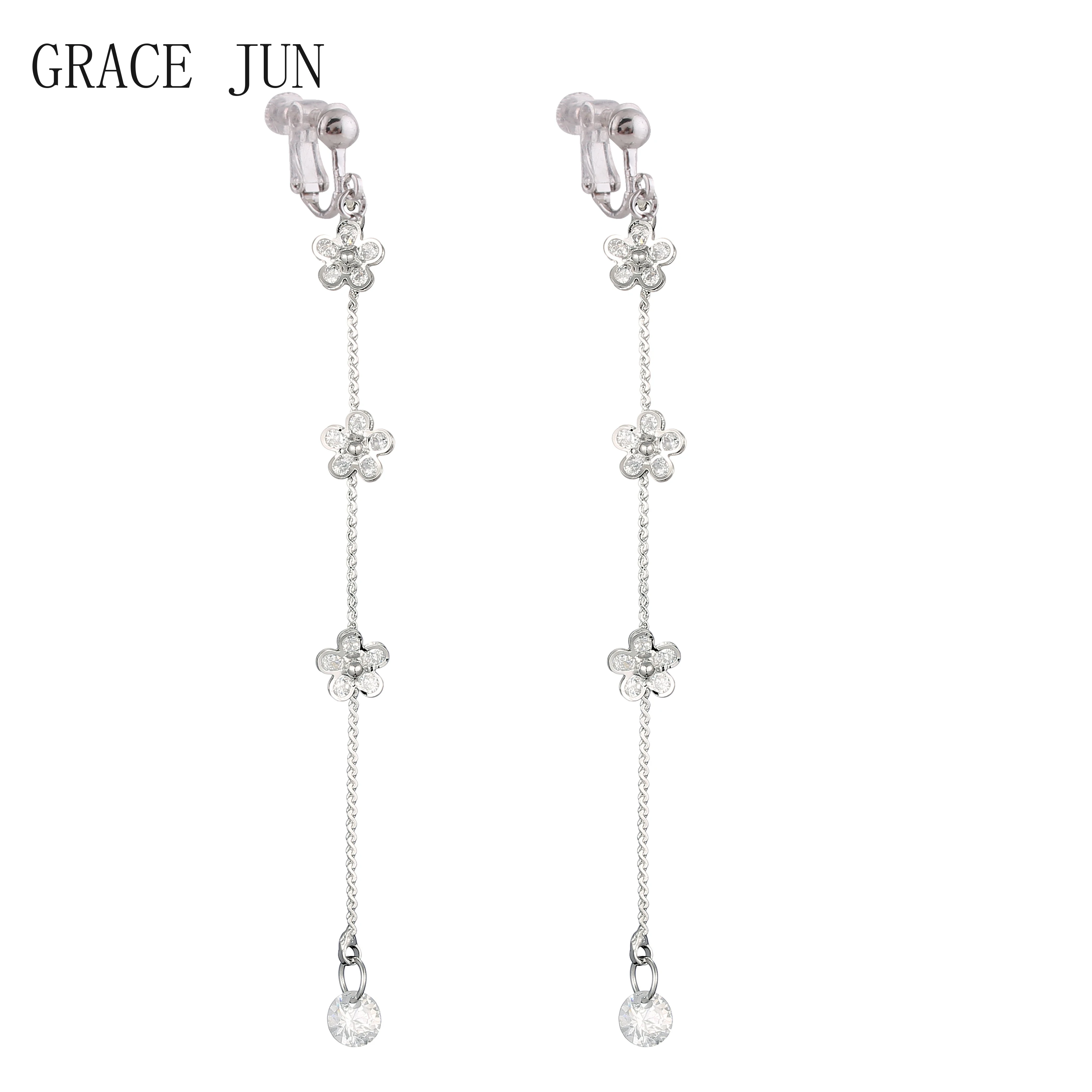 Бренд GRACE JUN корейский стиль длинные кисточки кубический циркон в форме цветка Клипсы Серьги для женщин Свадебные Висячие Серьги Симпатичные клипсы для ушей