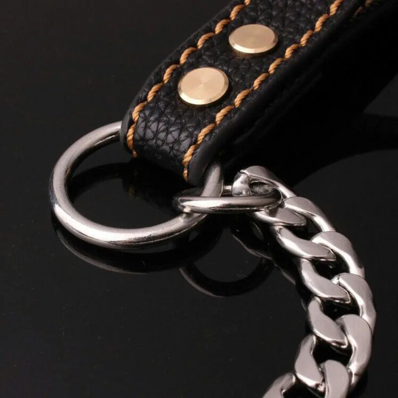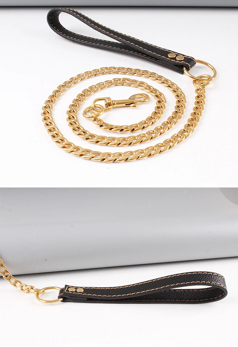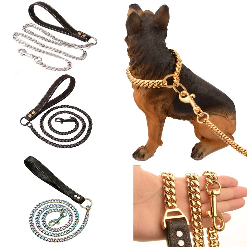 ПараметрИзделие: поводок с цепью для собакМатериал: нержавеющая сталь + черная кожаная веревкаЦвет: золотой, серебряный, черный, многоцветныйРазмеры: ширина 11,5 мм и длиной 125 см в длинуИспользование для: собакУ классной собаки должен быть классный дизайнерский ошейник! Идеально подходит как ошейник питбуля, Наша модная цепочка для собак прочная, стильная и удобная. Противоскользящая цепочка кубинского соединения изготовлена из сверхпрочной нержавеющей стали 316L, которая никогда не ржавеет или не раздражает кожу вашей собаки.▸ Badass ювелирные изделия для собак-ювелирные изделия для собак и Дизайнерские Ошейники для собак становятся все более популярными, но большинство из них изготавливаются для маленьких собак. Благодаря сверхмощному дизайну этого воротника ваш питбуль или большая собака будут выглядеть еще более крутой!▸ Прочный и долговечный-нержавеющая сталь невероятно прочная и никогда не ржавеет и не тускнеет, что делает ее идеальным материалом для металлического собачьего ошейника. Каждый собачий ошейник изготовлен из прочной нержавеющей стали 316L и имеет полированную отделку.▸ Стильный Комфорт-широкая кубинская цепочка отлично смотрится вокруг шеи вашей собаки, оставаясь удобной в течение нескольких часов, И не погубит вашу собаку/пальто, как много дроссельных ошейников или ошейников, которые врываются в кожу.