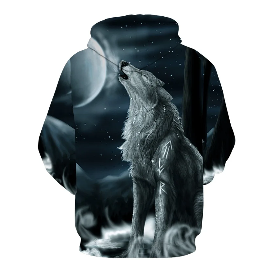Худи мужское с 3D-принтом Луны и волка, брендовый свитшот, пуловер ...