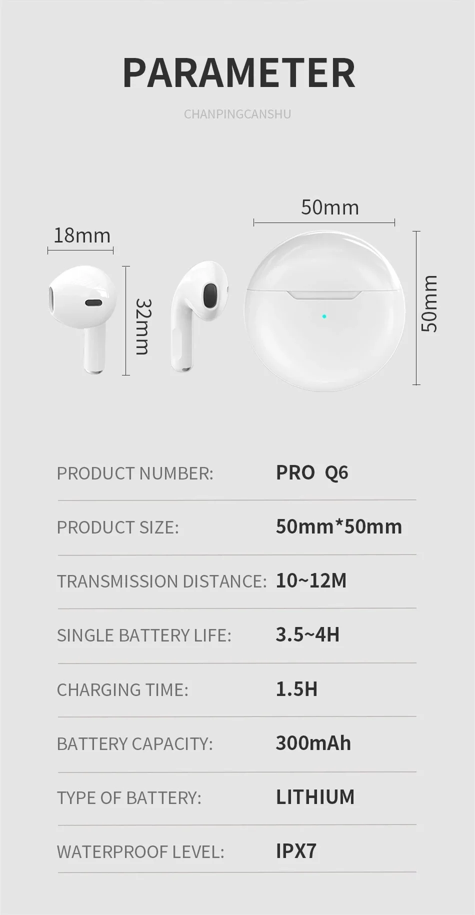 Наушники Pro 6*2Зарядный отсек * 1Зарядный жгут * 1Руководство пользователя * 1С упаковкой/без упаковки