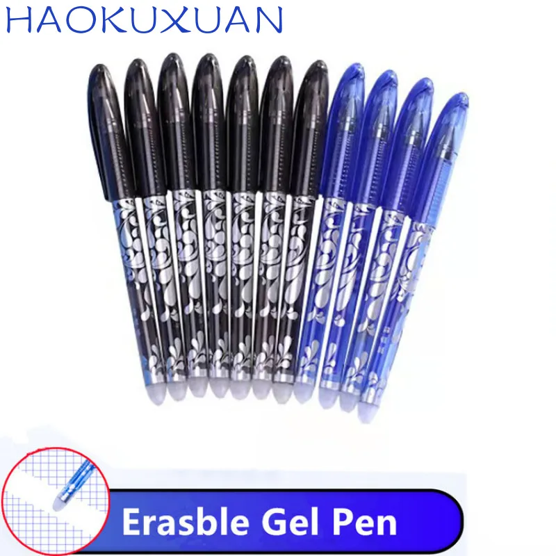 Набор стираемых гелевых ручек для офиса, 0,5 мм, Волшебная стираемая ручка с кнопкой слайдера, сменные стержнисинийчерныйчернила, школьные канцелярские принадлежности