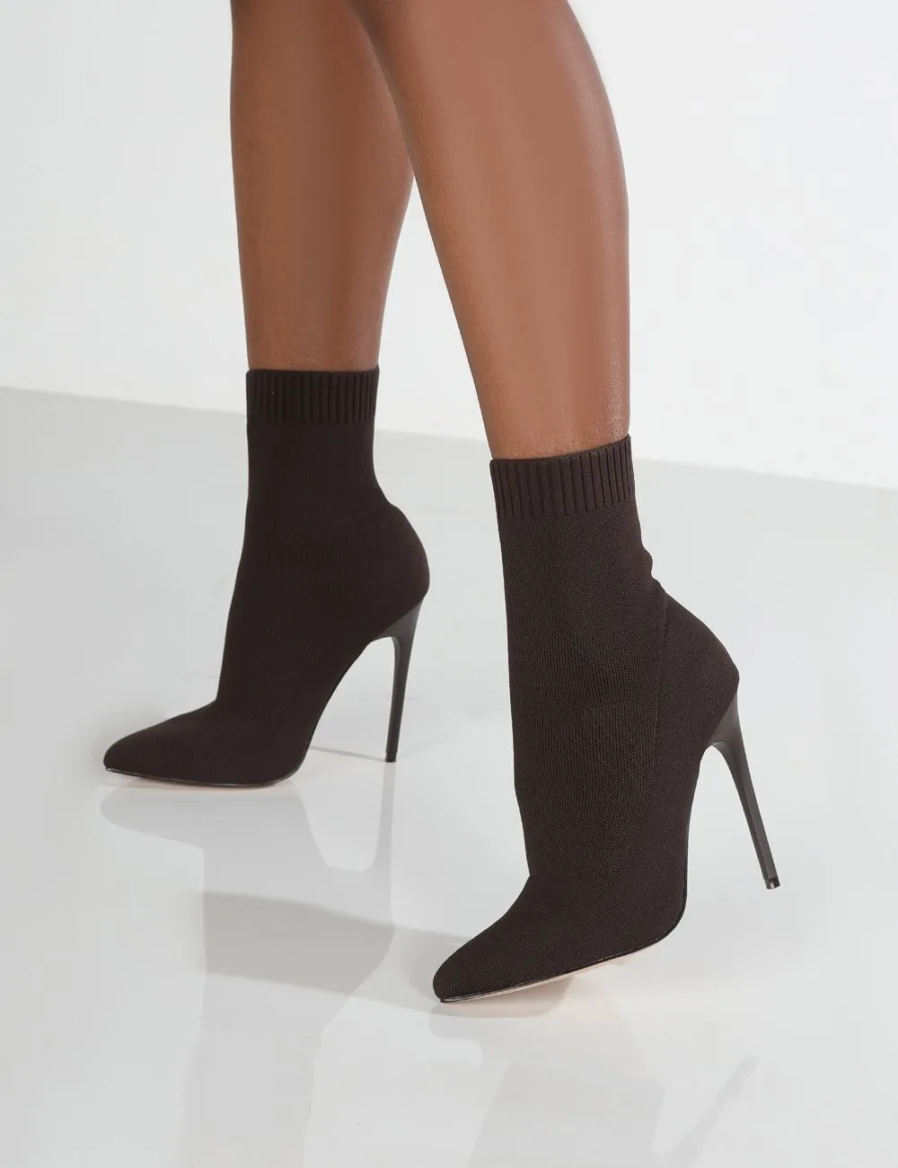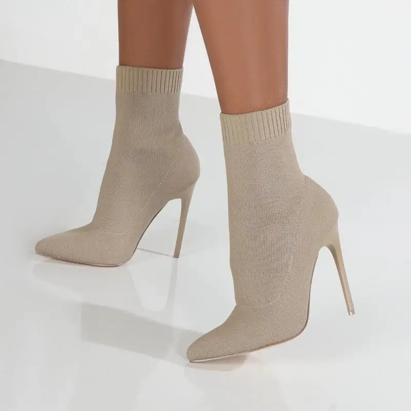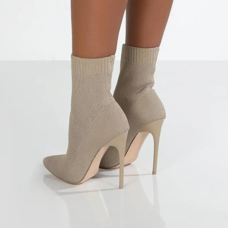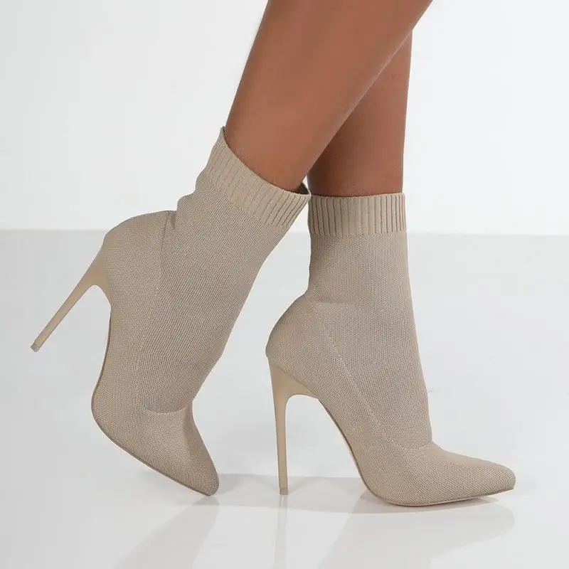 Женские трикотажные ботинки-носки на высоком каблуке, на тонком каблуке
