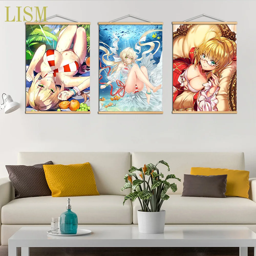 FGO FateEXTRA Nero Saber Anime манга настенный постер из массива дерева подвесной свиток с картиной на холсте