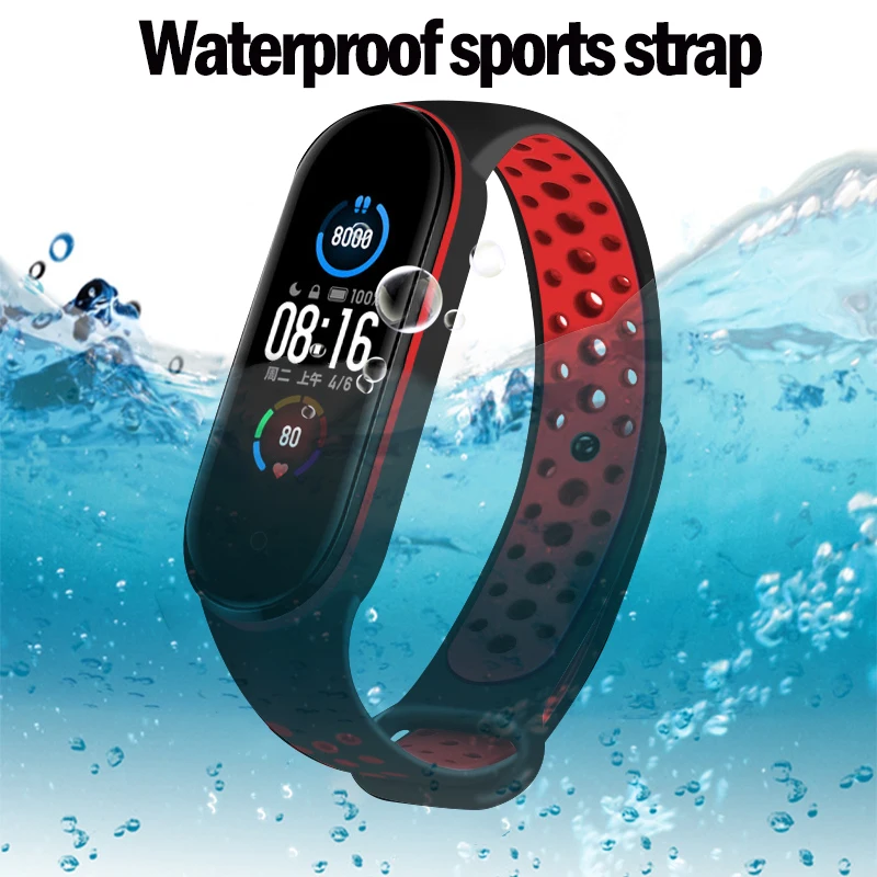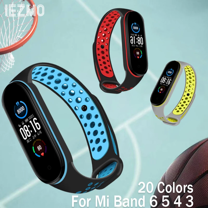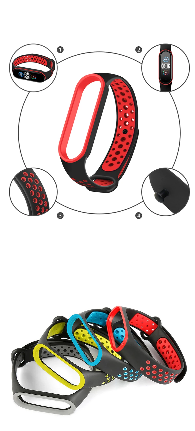 Силиконовый ремешок для Xiaomi Mi Band 5 4 3 6 пористый двухцветный...