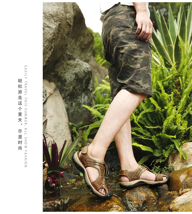Мужские кожаные сандалии, дышащая повседневная обувь, для пляжа, ди...
