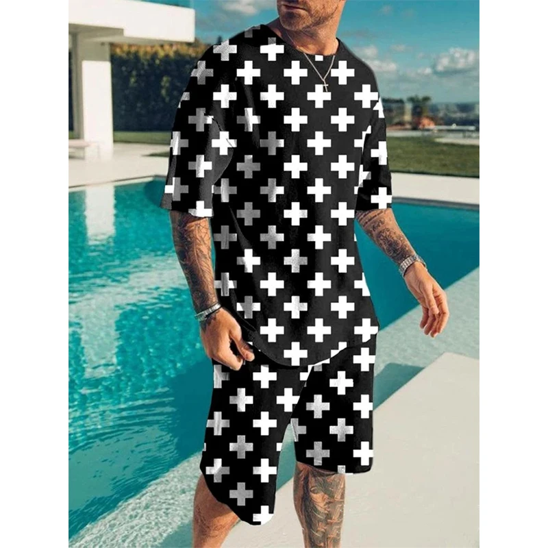 Мужской комплект из футболки и шортов, Повседневная пляжная одежда ...